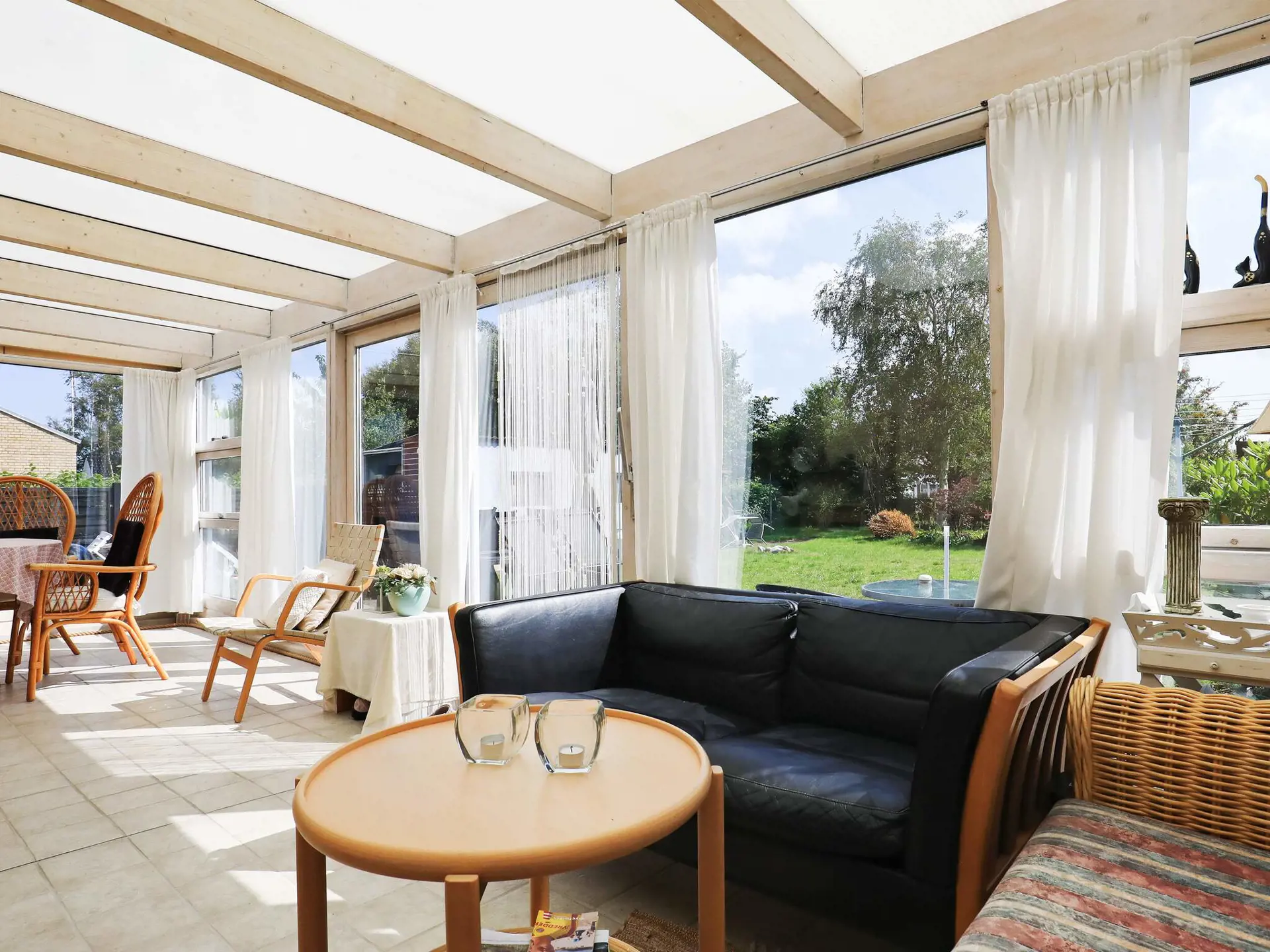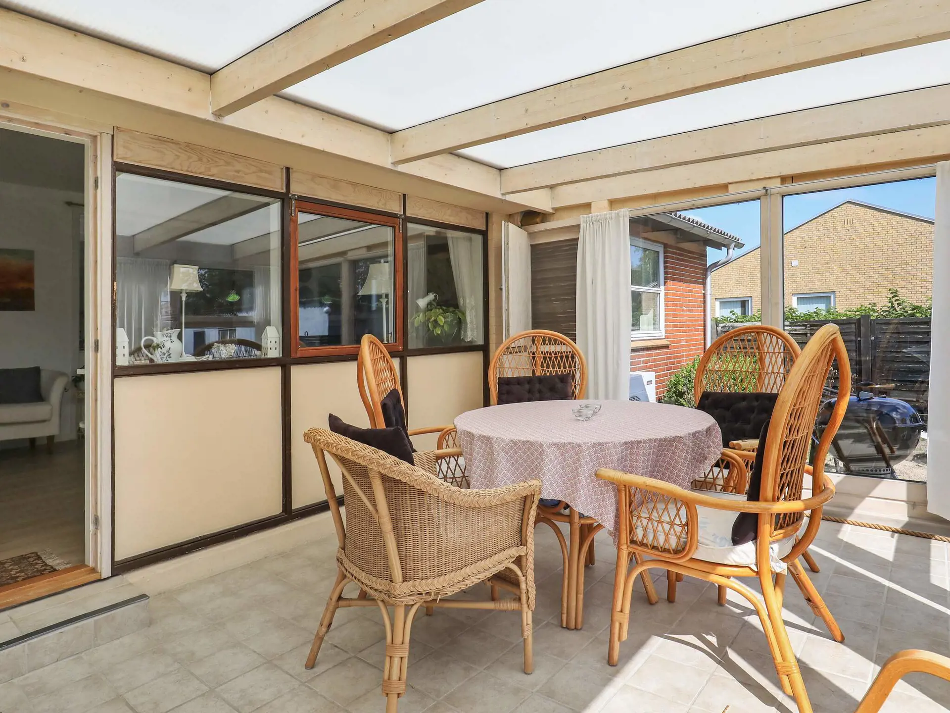 Das Haus bietet drei Schlafzimmer, zwei Bäder sowie einen Schlafplatz in 3/4-Größe im Wohnbereich. Vom offenen Küchen-/Wohnbereich hat man Zugang zur verglasten Veranda und weiter auf die Terrasse im Außenbereich. Die Küche wurde 2019 renoviert. Das Haus wird mittels einer nergieeffizienten Luft-Wasser-Wärmepumpe stromsparend beheizt. Es steht auf einem 726 m² großen Grundstück mit sonniger Rasenfläche für Sommertage.