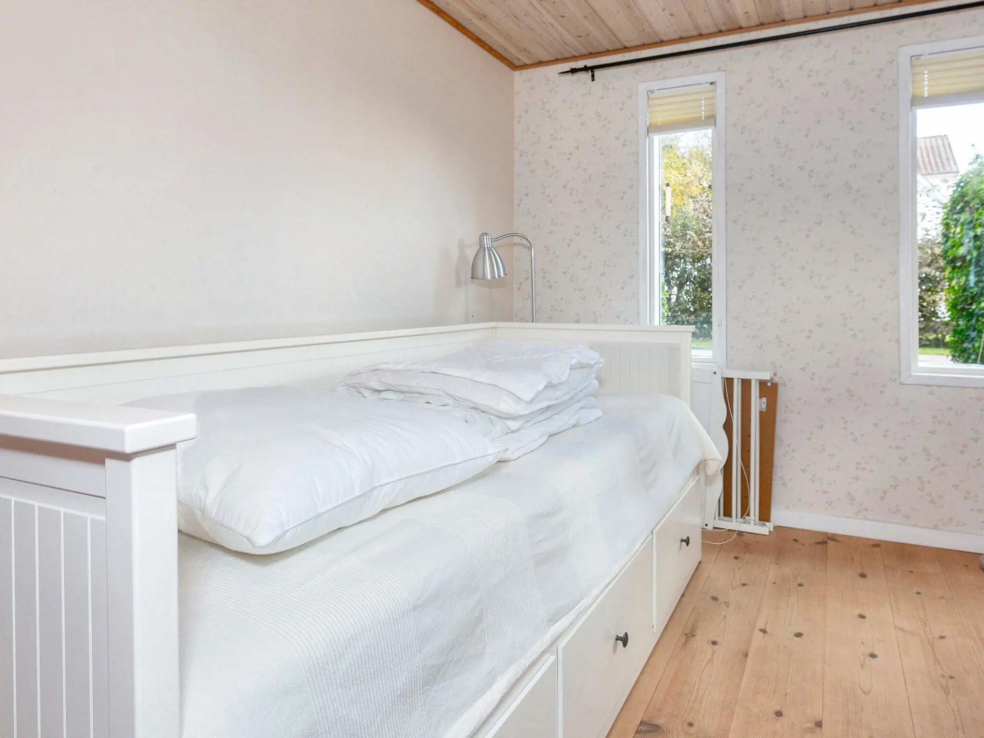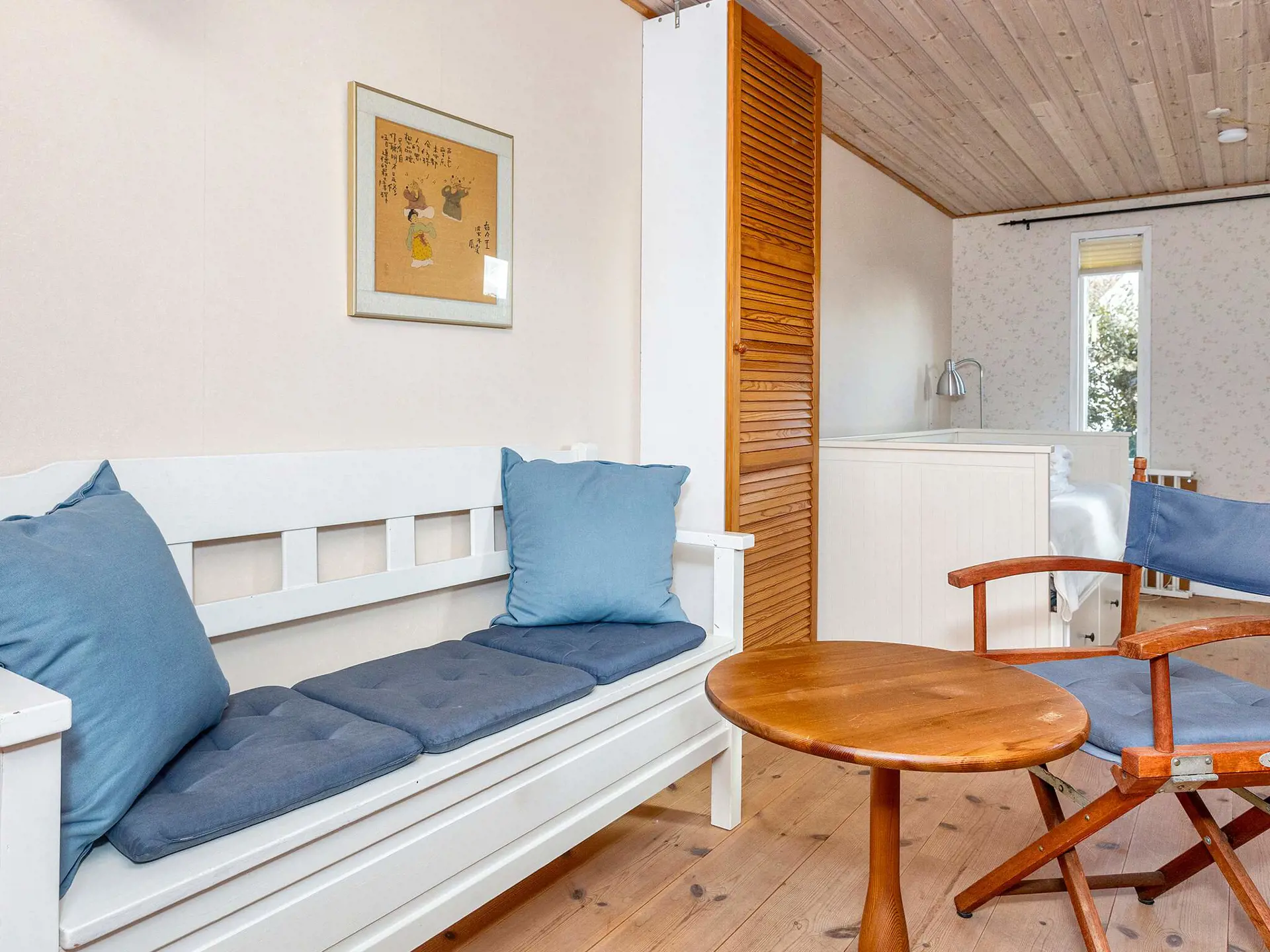 Die Atmosphäre im 125 m² großen Sommerhaus ist hell und freundlich. Der Grundriss eignet sich gut für sechs Personen und eventuell ein Kind, da sich zwei Schlafzimmer im ersten Stock und zwei Schlafplätze im Anbau befinden. Auf der Terrasse gibt es einen großen Spielbereich mit Spielzeug für die Kleinen. Im Anbau gibt es außerdem Tischfußball und Darts.