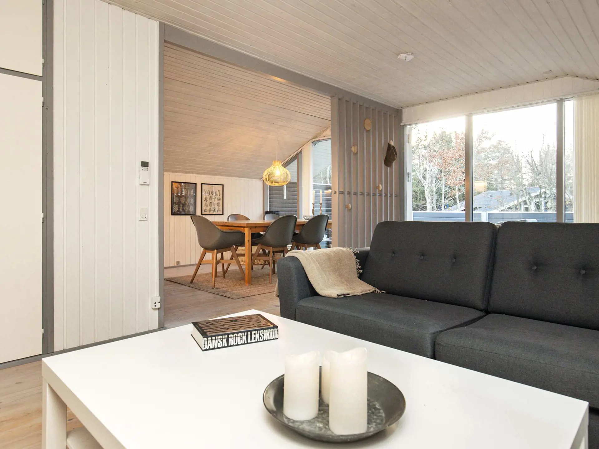 Gut instand gehaltenes, helles Ferienhaus mit hauseigener Sauna im Anschluss an das Bad. Liegt nicht weit vom kleinen Ferienort Ålbæk und nur ca. 200 m vom kinderfreundlichen Badestrand von Napsjert.