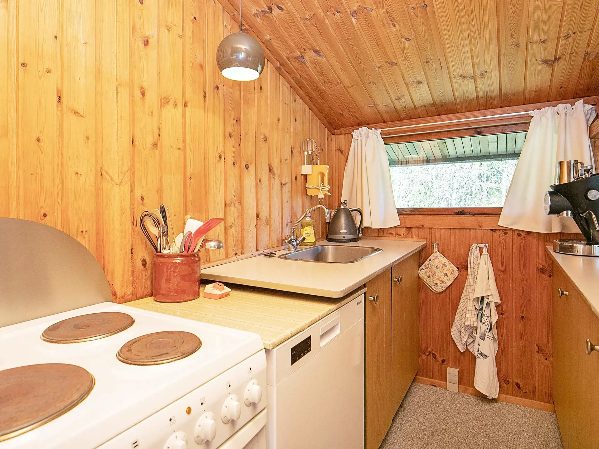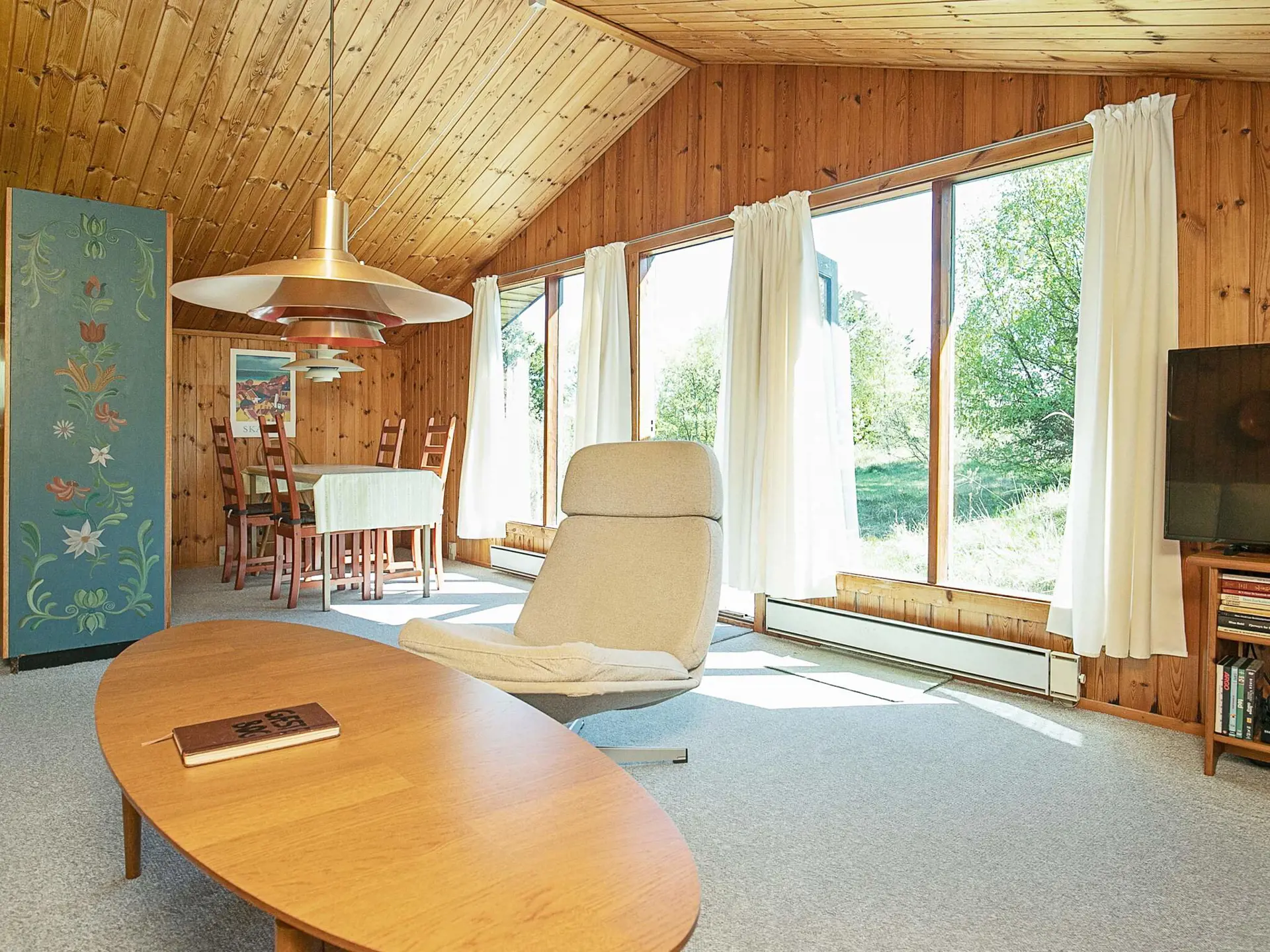 Das Ferienhaus ist eher einfach und zweckmäßig eingerichtet. Es hat zwei Schlafzimmer und einen offenen Küchen-/Wohnbereich mit Essecke und Zugang zur geschützten Terrassenfläche über Eck. Recht geräumiges Badezimmer mit u.a. Dusche und Waschmaschine. Zur Ausstattung gehören außerdem Chromecast verbunden mit einem Smart-TV. Auf dem Flachbildschirm lassen sich so mehr als 40 verschiedene Sender (sowohl skandinavische als auch einige deutsche) empfangen. Zudem Espressomaschine im Haus.