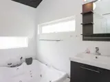 Gut ausgestattetes Ferienhaus mit Whirlpool und Sauna im Bad. Liegt in ruhiger Umgebung, in einem Ferienhausgebiet nur wenige hundert Meter vom Ostseestrand.