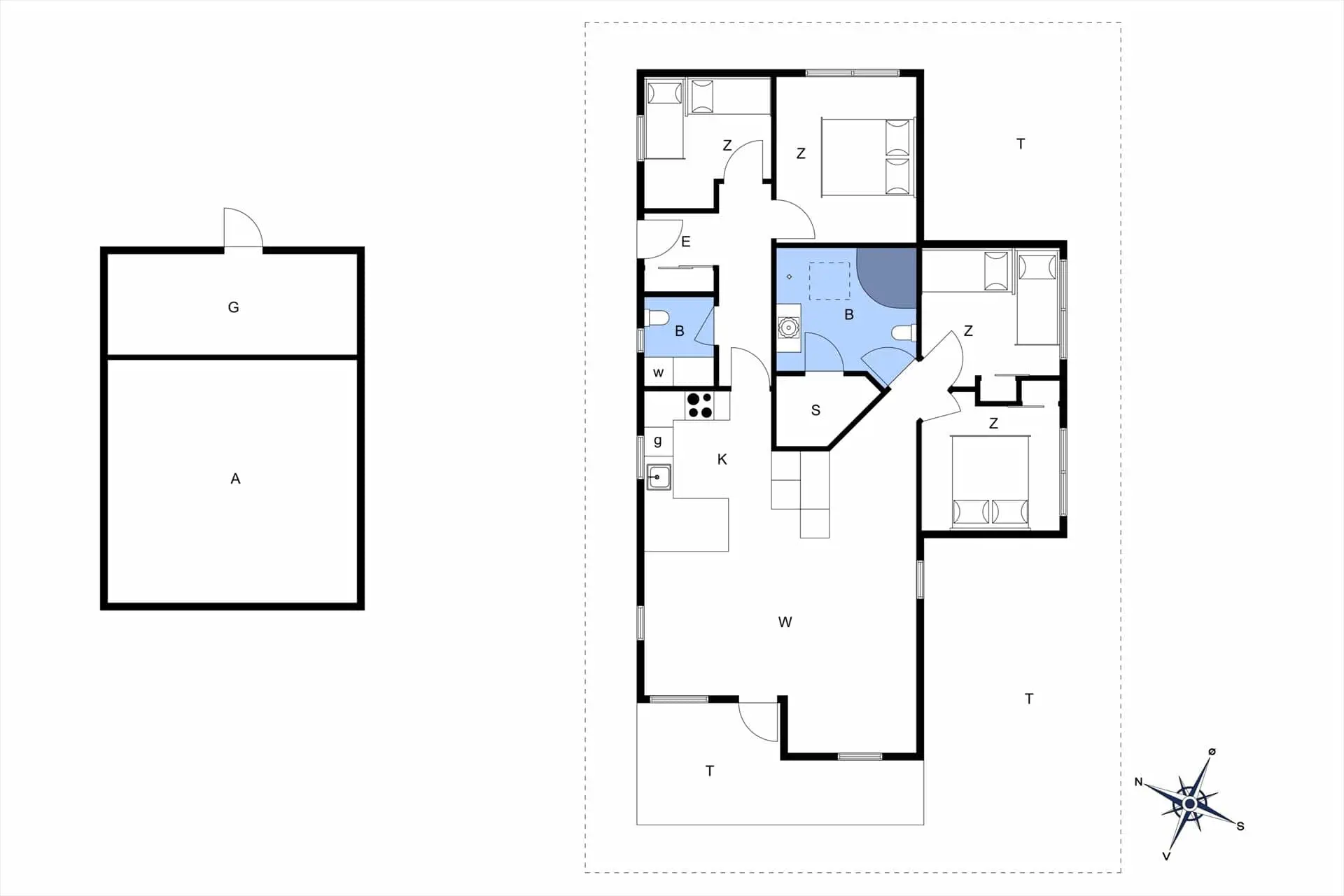 Das Ferienhaus ist mit Fokus auf Gemütlichkeit und Komfort eingerichtet. Die großen Fenster sorgen für ein schönes Licht, und der offene Grundriss schafft eine angenehme Atmosphäre. Die gut ausgestattete Küche ist offen mit dem Wohnbereich verbunden, der viel Platz für Entspannung und gemeinsame Mahlzeiten bietet. Mit zwei Badezimmern ist das Haus ideal für Paare und Familien, die zusätzlichen Komfort schätzen.