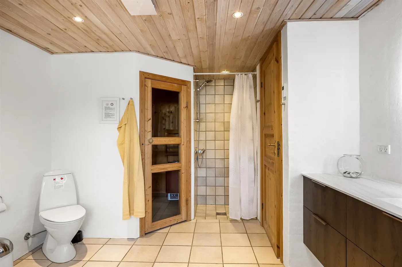 Es gibt 2 Badezimmer mit Duschnische und 2 Toiletten. Fußbodenheizung in 2 Badezimmern. Es steht eine Sauna zur Verfügung in der Sie sich so richtig entspannen können.