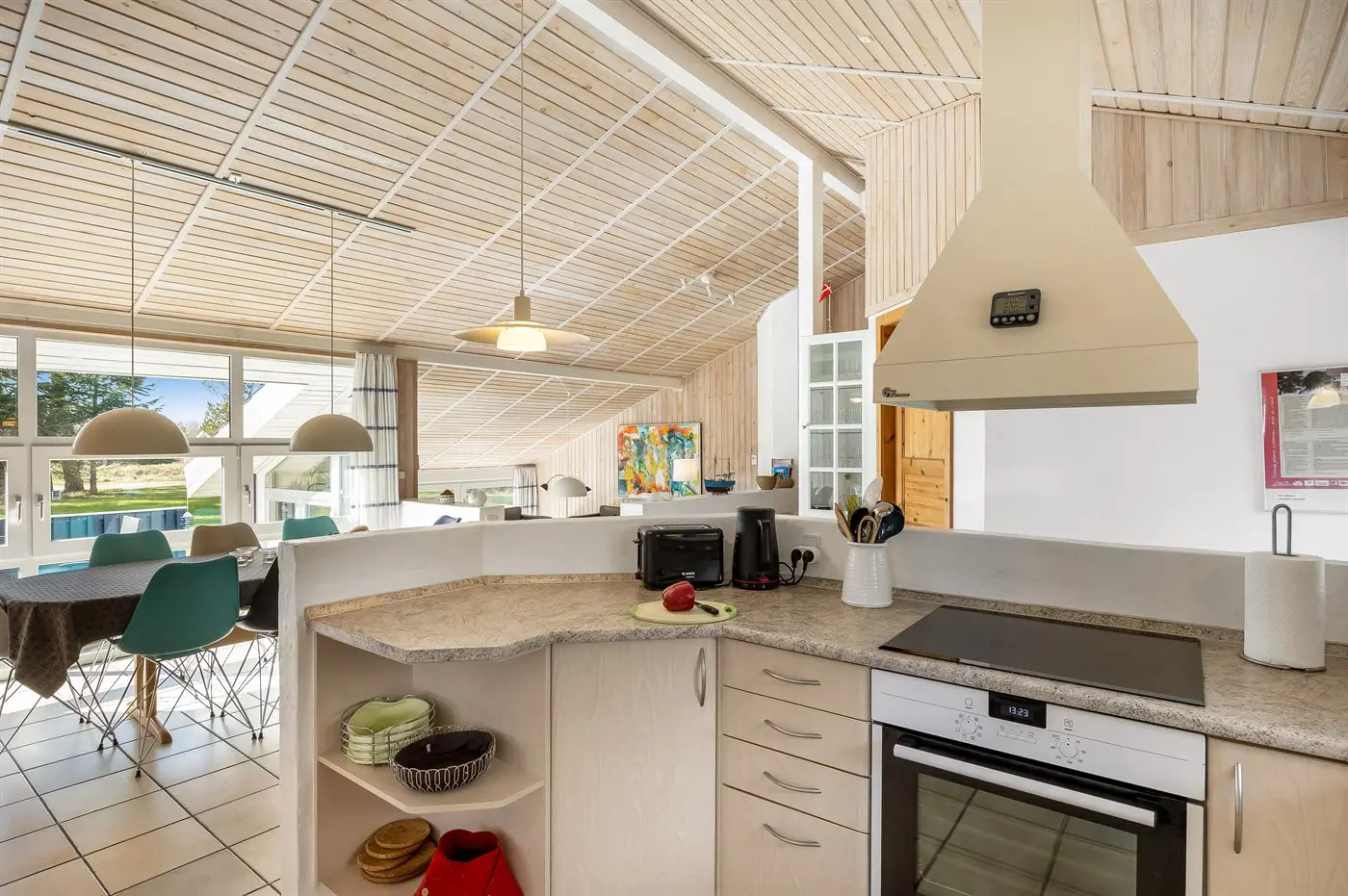 Die Küche ist mit Kühlschrank ausgestattet. Außerdem gibt es 4 Induktions-Kochzonen, Umluftofen, Mikrowelle sowie Geschirrspüler.