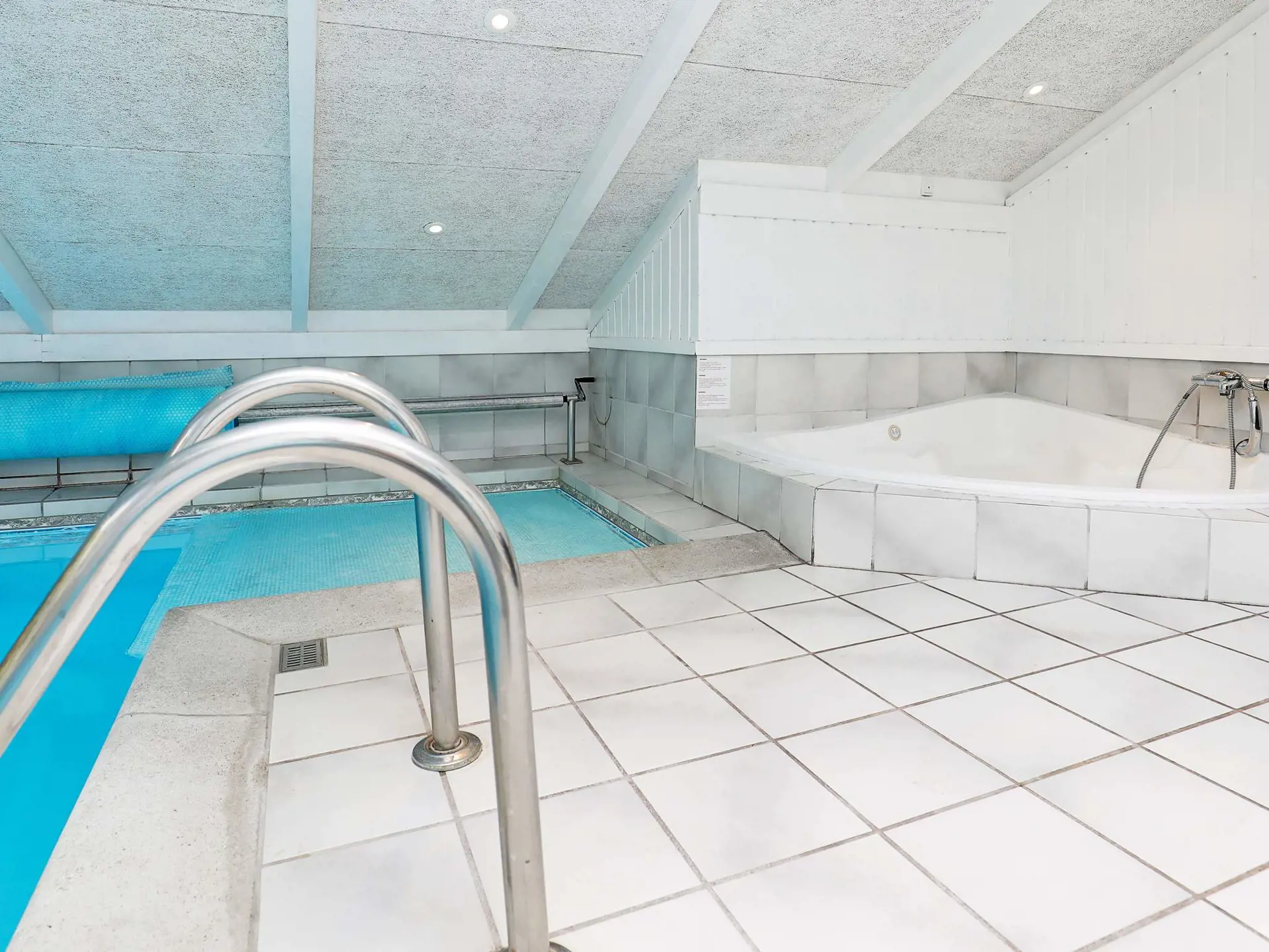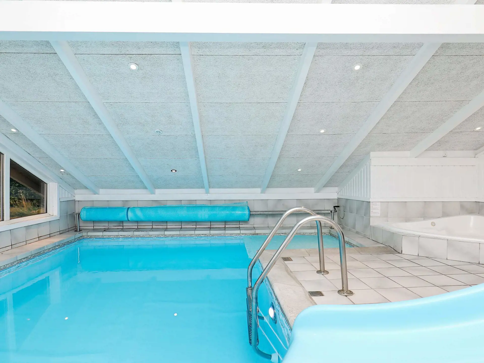 Gut eingerichtetes Ferienhaus mit Pool, Whirlpool und Sauna sowie verschiedener Aktivitätsmöglichkeiten, nahe am kinderfreundlichen Strand Bratten Strand gelegen. Zum Poolbereich gehören ein großer Pool, ein großer Whirlpool, und eine Sauna mit Platz für 4 Personen. Der Pool ist 15 m2 groß und verfügt über eine Poolrutsche und ein Kinderpool. Eine Luft-/Wasser-Wärmepumpe sorgt für energiesparende Erwärmung des Poolbereiches.