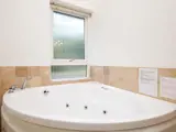 Ferienhaus mit Whirlpool für entspannende Stunden einem der beiden Bäder. Liegt bei Bunken Strand, wo es 2005 aus hochwertigen Materialien erbaut wurde. Einrichtung und Dekor des Hauses wirken hell und einladend.