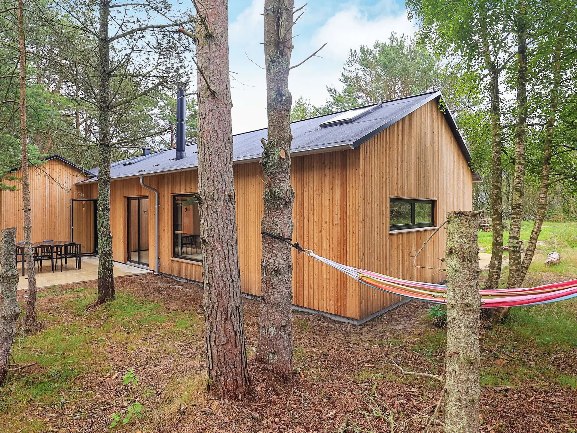 Das Ferienhaus liegt auf einem großen Naturgrundstück und bietet eine fantastische Terrasse. Hier können Sie Ihren Urlaub im Freien genießen und die Sommersonne mit Entspannung, Sonnenbaden, Grillgerichten und einem guten Glas Wein an warmen Abenden genießen. Das Haus verfügt über einen eigenen Bouleplatz und verschiedene Sommerspiele. Auf dem Grundstück gibt es einen Bereich, in dem Sie Ihren Urlaub in Hängematten genießen können.