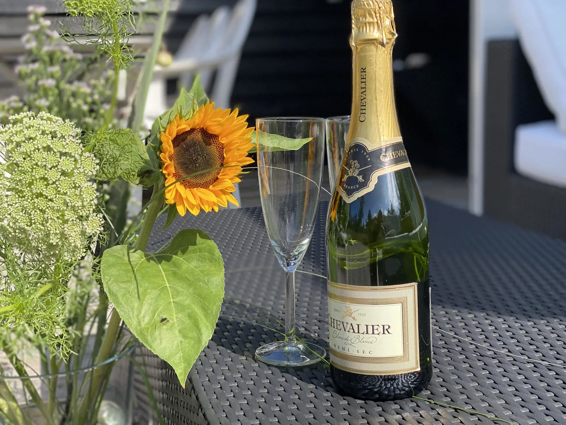 Der Mittelpunkt des Hauses ist der helle, offene Küchen- und Wohnbereich in sanften Farben mit echter Badehotel-Atmosphäre. Durch Fenster und Terrassentüren strömt viel Licht herein. Und der Kaffee? Genau so, wie Sie ihn mögen – aus der Kapselmaschine oder klassisch gebrüht. Von hier aus gelangen Sie direkt auf die Terrassen, wo Loungemöbel, Sonnenliegen und Grill zu langen, entspannten Tagen und lauen Abenden einladen.