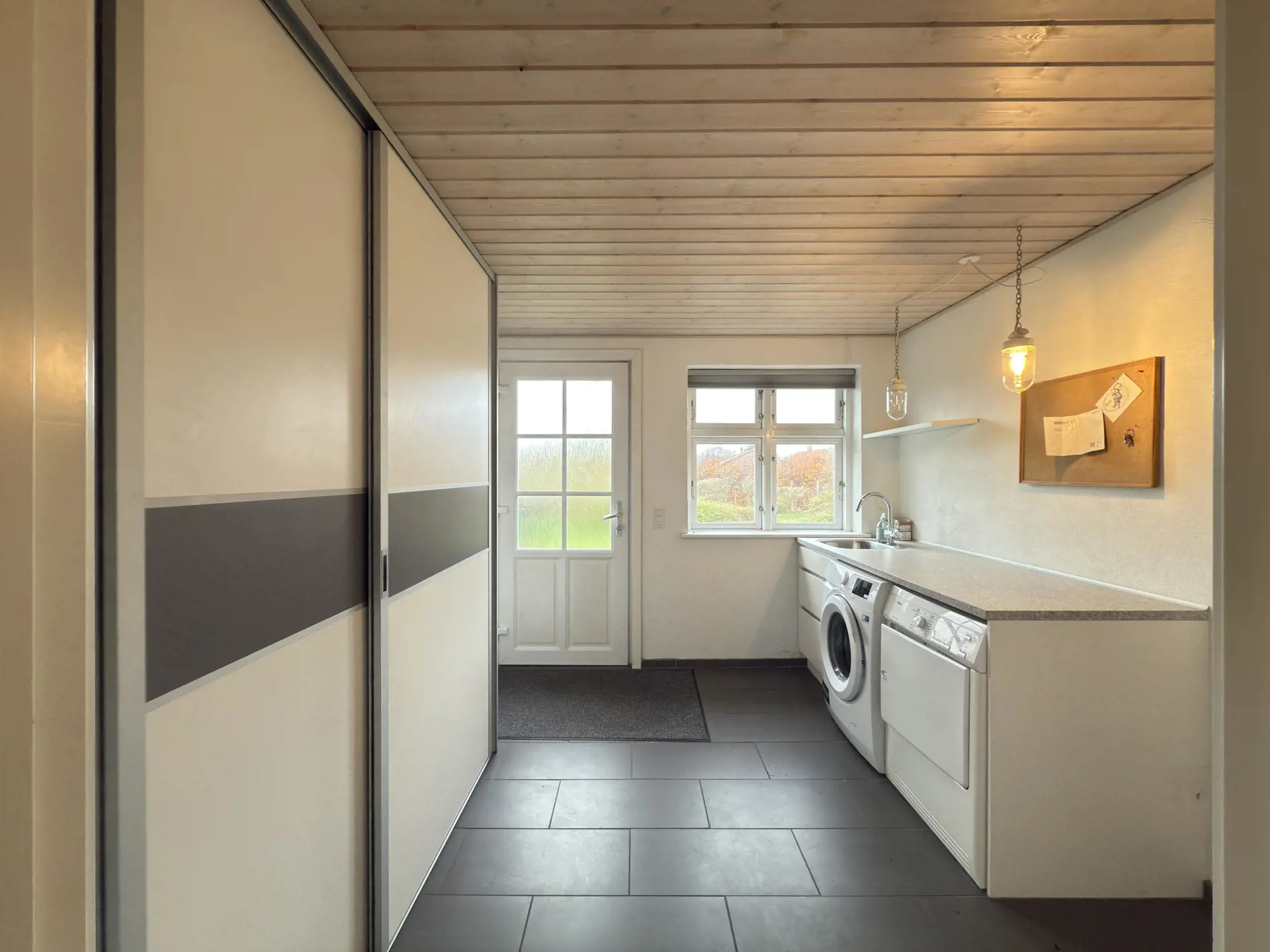 Der große Hauswirtschaftsraum ist mit Waschmaschine und Trockner ausgestattet, sodass Sie bei Bedarf Ihre Urlaubsgarderobe auffrischen können. Außerdem gibt es reichlich Platz für sandige Schuhe und nasse Handtücher nach einem langen Tag am Strand.