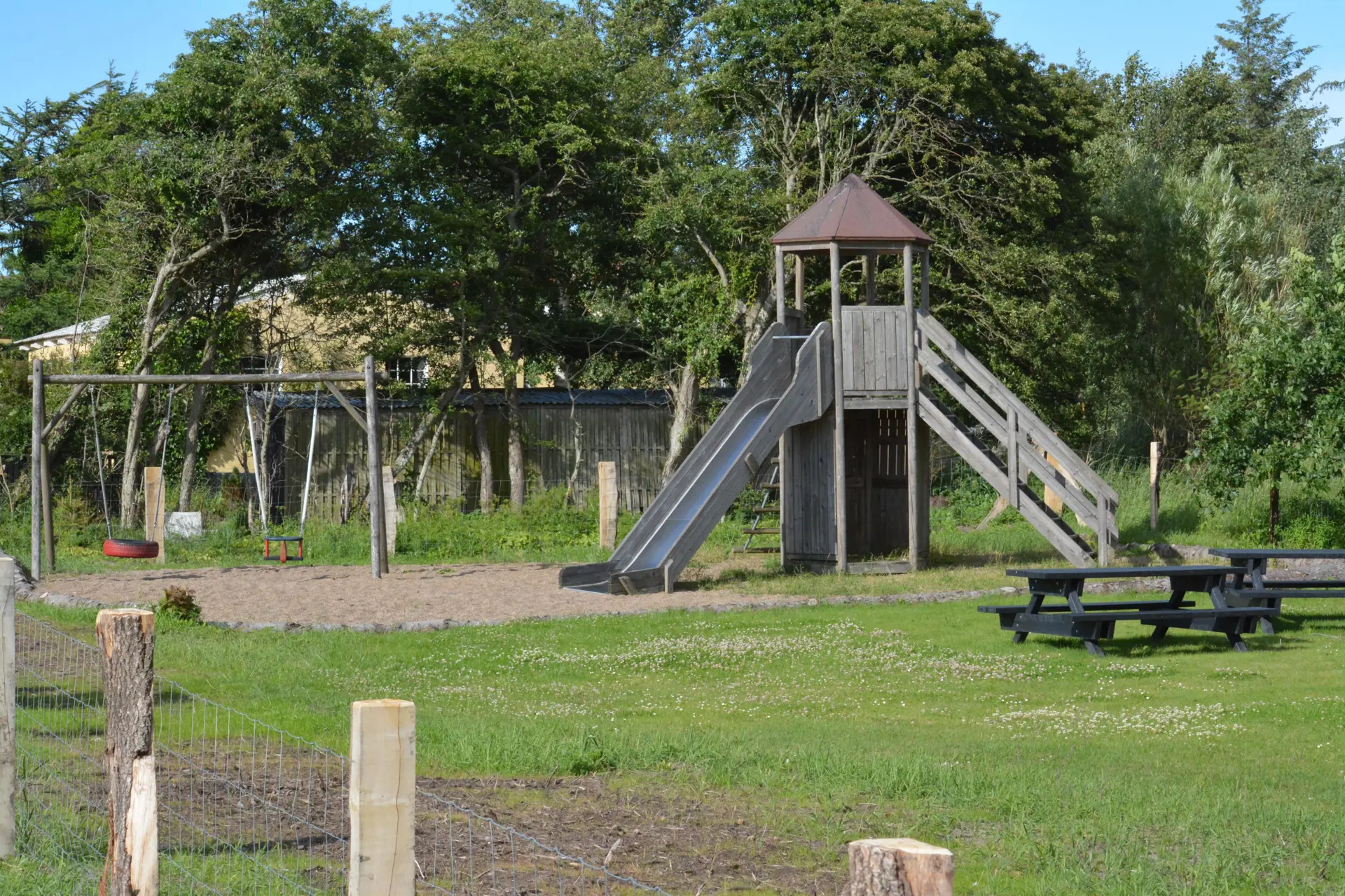 Draußen erwartet Sie ein riesiger Garten auf drei Ebenen – mit großen Rasenflächen zum Ballspielen, Toben oder Picknicken und zwei sonnigen Terrassen, auf denen Sie sowohl den Morgenkaffee als auch gemütliche Grillabende unter freiem Himmel genießen können.