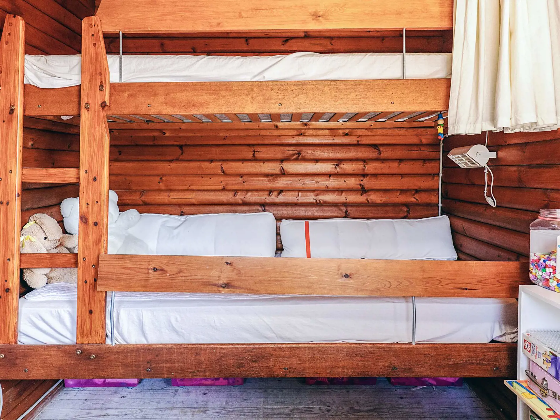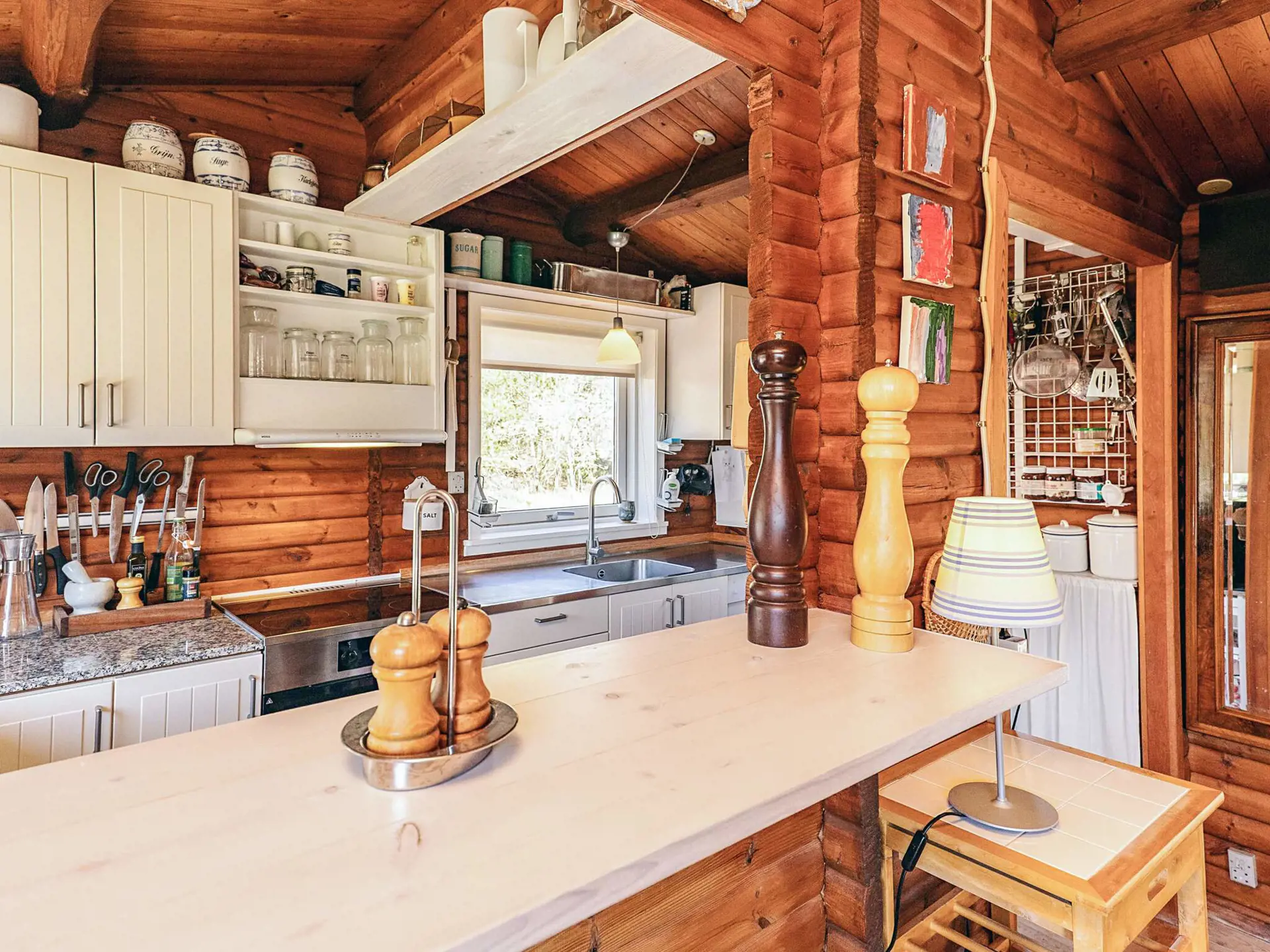 Das Ferienhaus besteht aus einer gut ausgestatteten Küche, einem Wohnzimmer mit gemütlichem Holzofen und Fernseher mit integriertem Chromecast, einem Schlafzimmer mit Doppelbett sowie einem 2. Zimmer mit Doppelbett und zwei Kojen im Etagenbett. Das Haus verfügt über ein Badezimmer mit Dusche.
