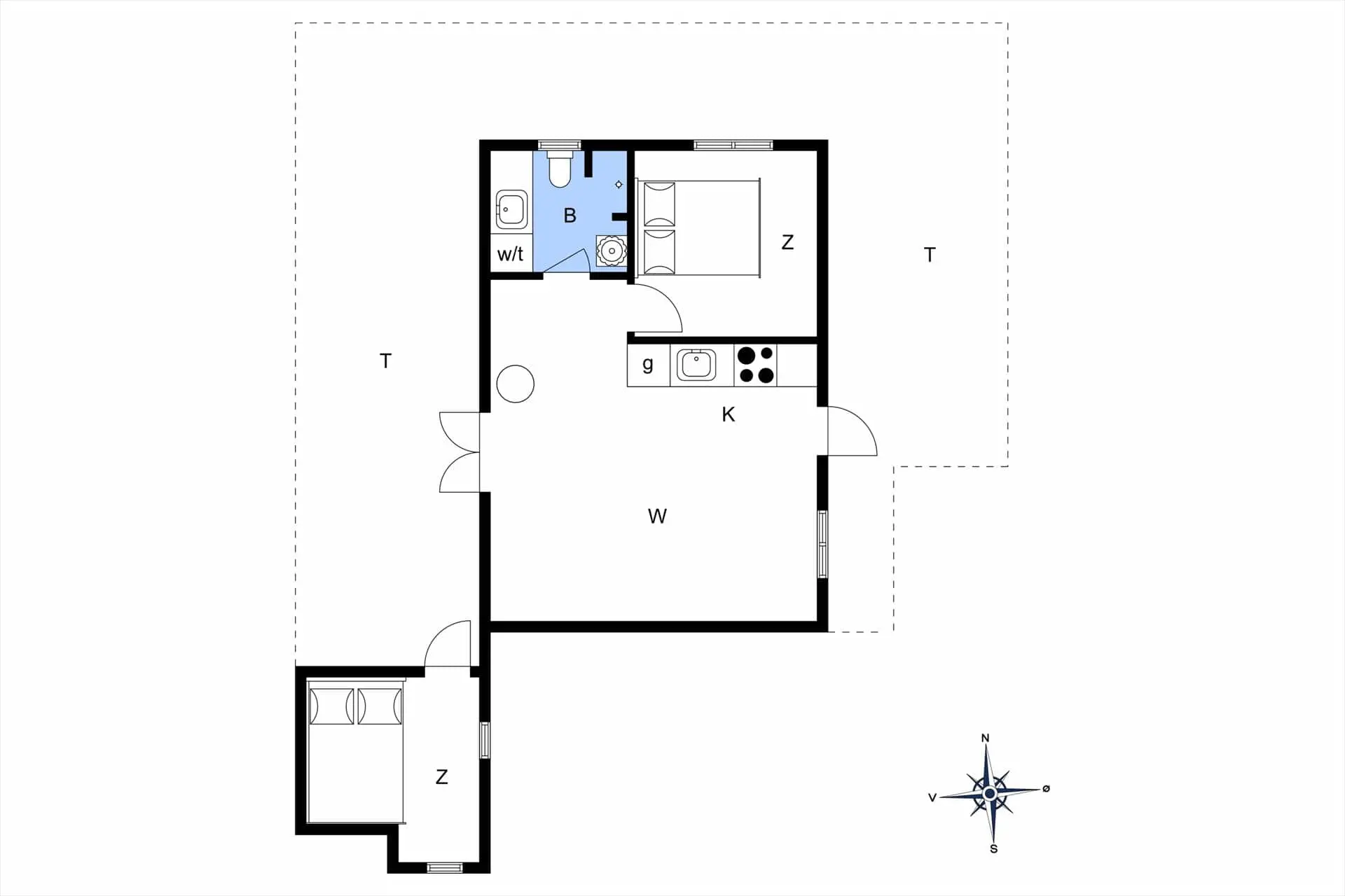 Mit 47 m² gehört dieses Ferienhaus sicher nicht zu den größten auf dem Markt, aber es wird durch einen geräumigen 9 m² großen Anbau ergänzt. Außerdem ist der Platz im Inneren gut genutzt, und die hellen Farbtöne der Einrichtung lassen die Räume leicht und luftig wirken. Ein Schlafzimmer befindet sich im Nebengebäude. Wenn du mit deiner Familie hier bist, sollten die Kinder groß genug sein, um dort zu schlafen – oder so klein, dass sie es vorziehen, im Doppelbett bei ihren Eltern zu schlafen. Auch bei einem Urlaub zu zweit ist es schön, sich tagsüber im Wohnzimmer aufzuhalten: Morgens, mittags und abends kannst du in der offenen Küche leckere Mahlzeiten zubereiten, und wenn du es dir auf dem Sofa gemütlich machen willst, kannst du den Kaminofen und den Flachbildfernseher nutzen.