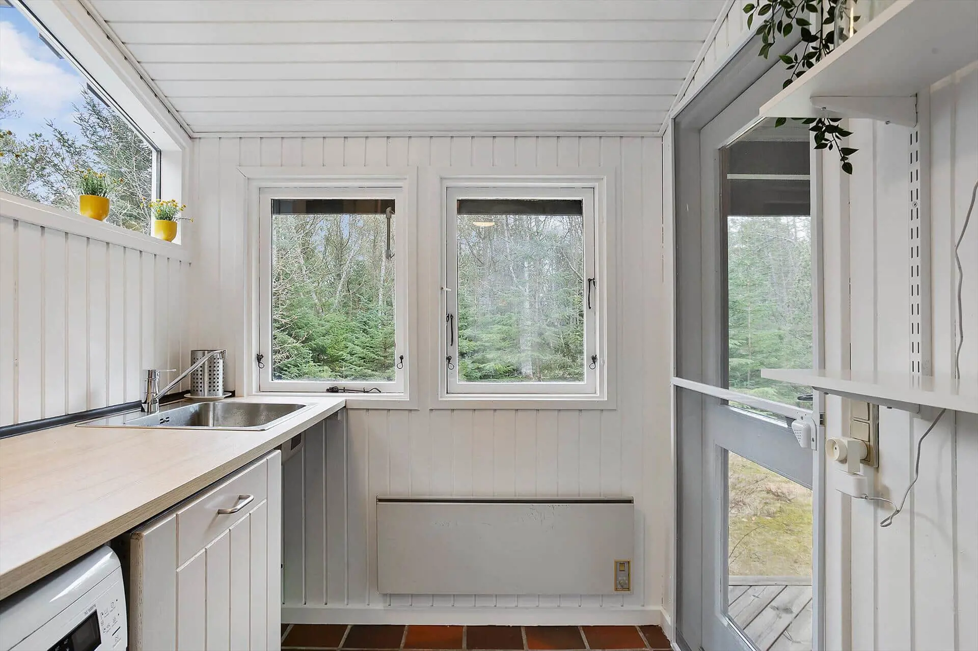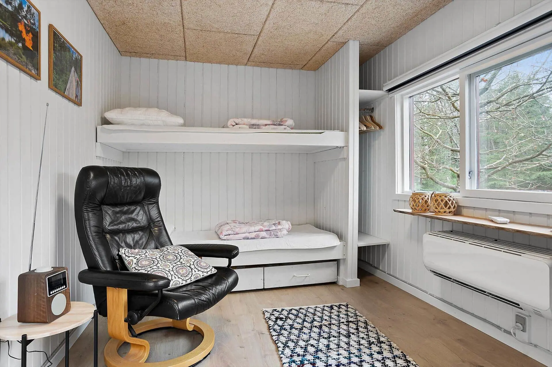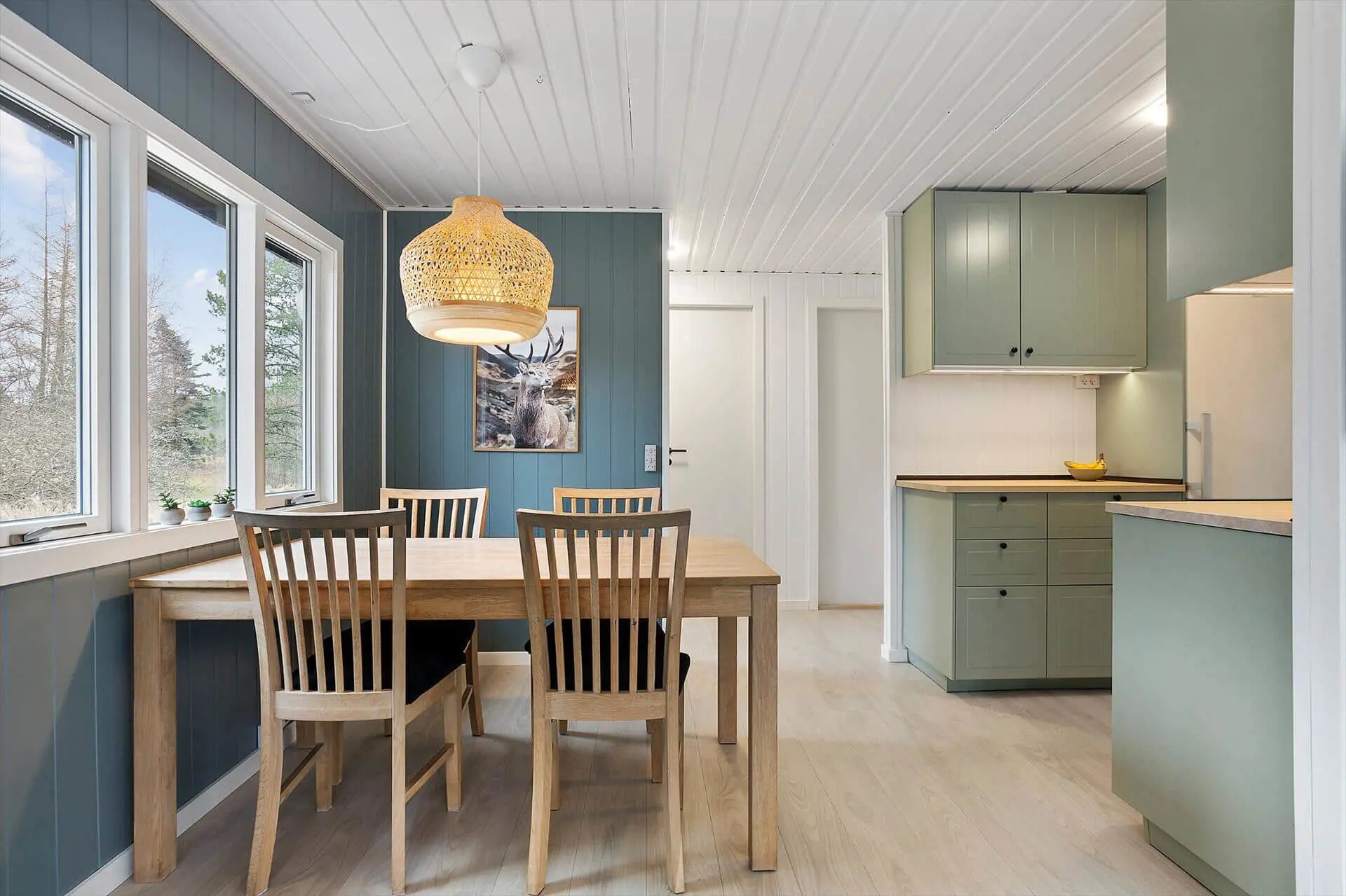 Im Inneren ist das Ferienhaus auf Gemütlichkeit und Komfort ausgelegt. Die hellen und offenen Räume laden zum Beisammensein ein, bieten aber auch Rückzugsmöglichkeiten. Das Haupthaus beherbergt die Hauptwohnräume, in denen Sie sich im Wohnzimmer sammeln und das Licht durch die großen Fenster genießen können, während die Küche zum gemeinsamen Kochen und gemütlichen Beisammensein einlädt. Im Annex finden Sie zwei Schlafplätze in Etagenbetten mit Moskitonetz – ideal für Kinder oder Teenager, die ihr eigenes kleines Reich haben möchten. Überall im Haus herrscht eine ruhige und angenehme Atmosphäre, in der Sie Ihren Urlaub in Ihrem eigenen Tempo gestalten können, sei es beim Lesen, Spielen oder einfach beim Genießen des Naturblicks.