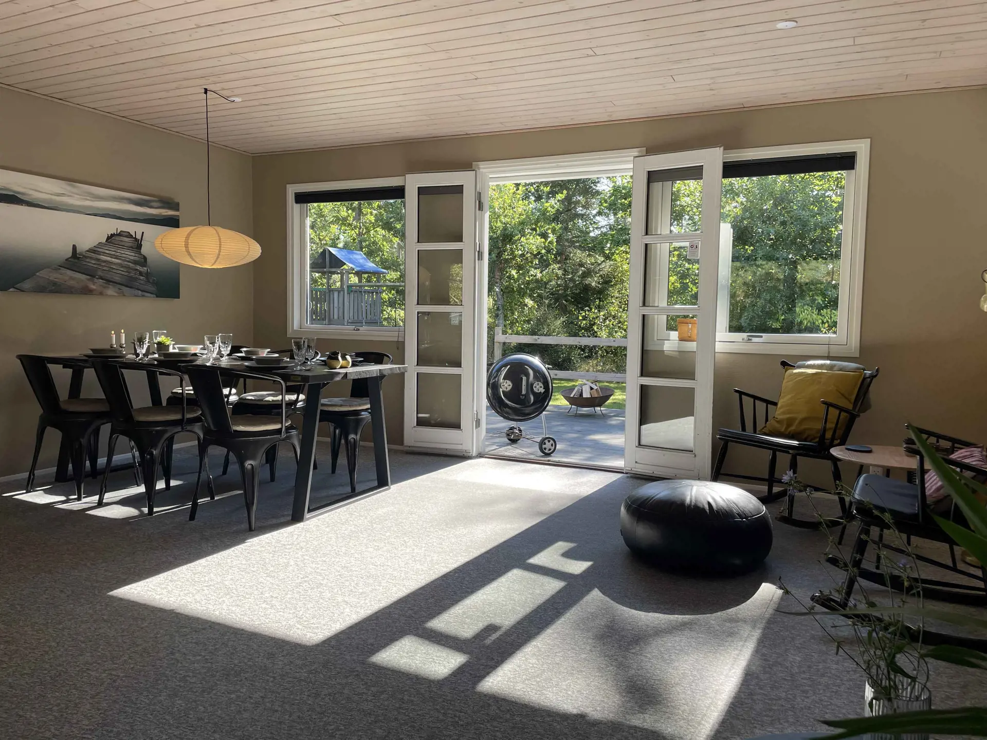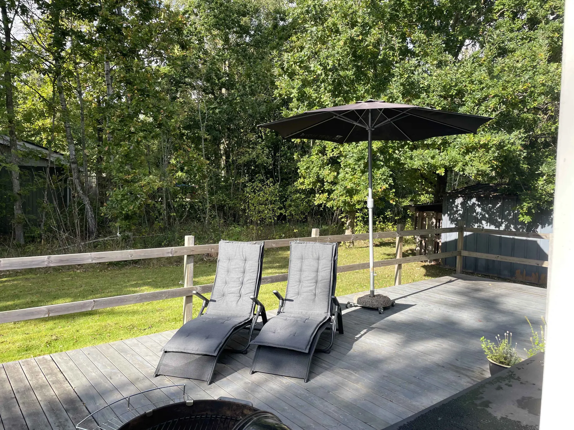 An schönen Sommertagen wird die große Terrasse zur Erweiterung des Hauses: Einfach die Flügeltüren öffnen, auf den Terrassenmöbeln entspannen, essen oder spielen. Sonnenliegen, Hängematte, Sonnenschirme, Spielgeräte, Leitergolf und ein Grill stehen euch zur Verfügung. Wenn es etwas kühler ist, sorgt der Außenkamin für eine besonders gemütliche Stimmung.