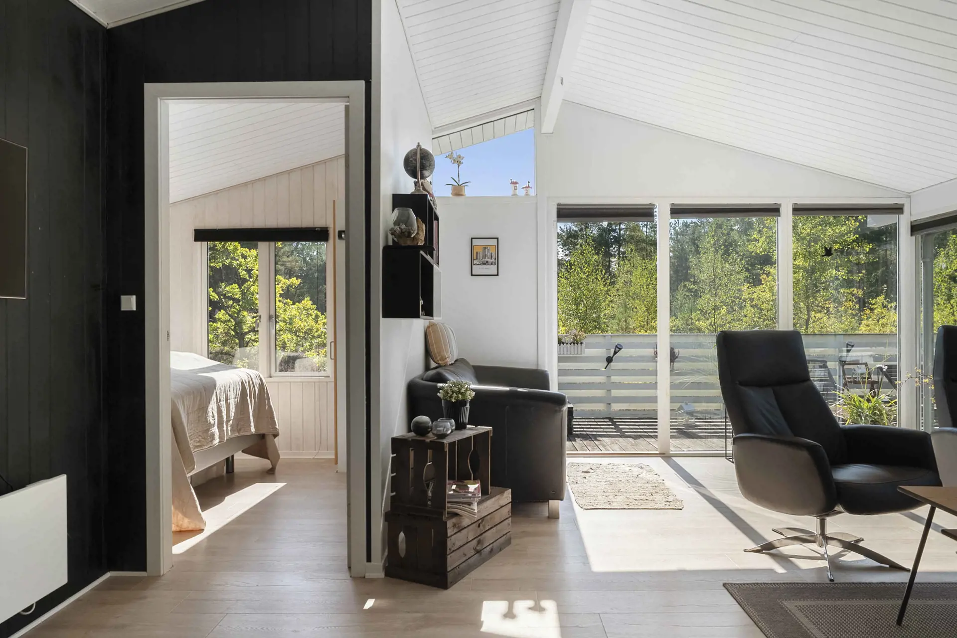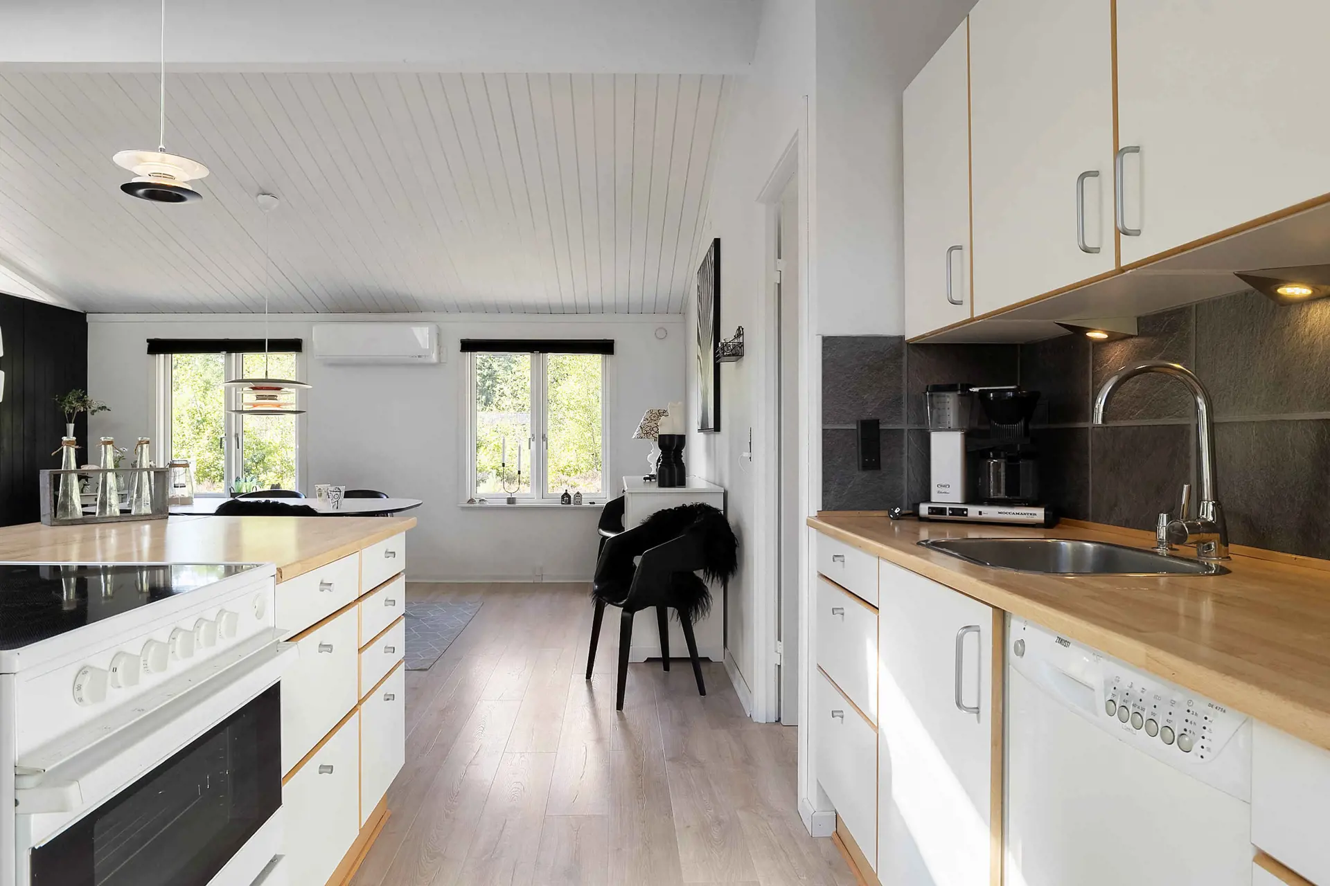 Das Ferienhaus bietet 3 komfortable Schlafzimmer, eine große helle Wohnküche und ein geräumiges Wohnzimmer mit Blick auf das Naturgrundstück – ideal für entspannte Urlaubstage und gemütliche Abende.