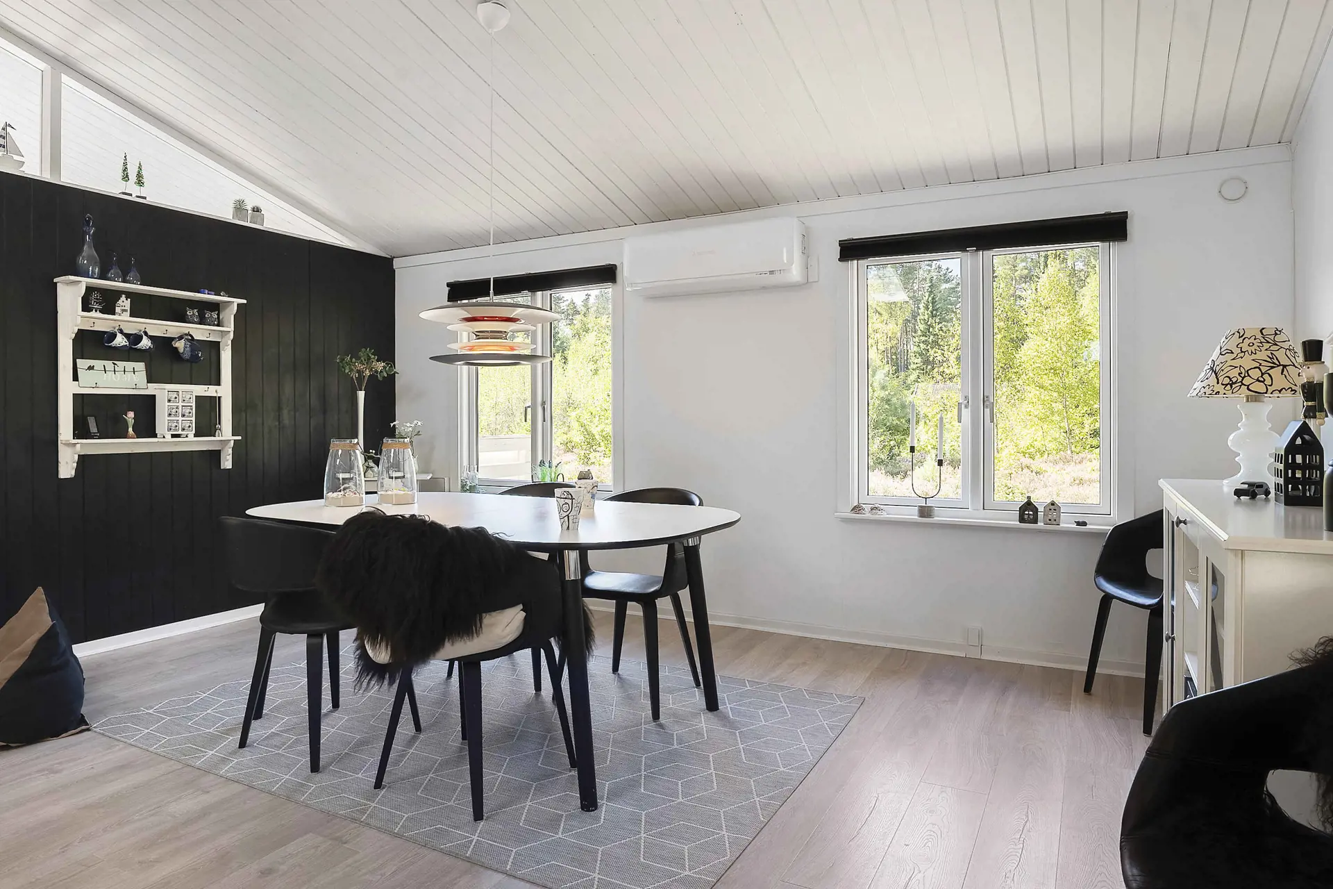 Eine energieeffiziente Wärmepumpe sorgt ganzjährig für ein angenehmes Raumklima, während der Kaminofen an kühleren Tagen zusätzliche Wärme und echte Ferienhausgemütlichkeit bietet.