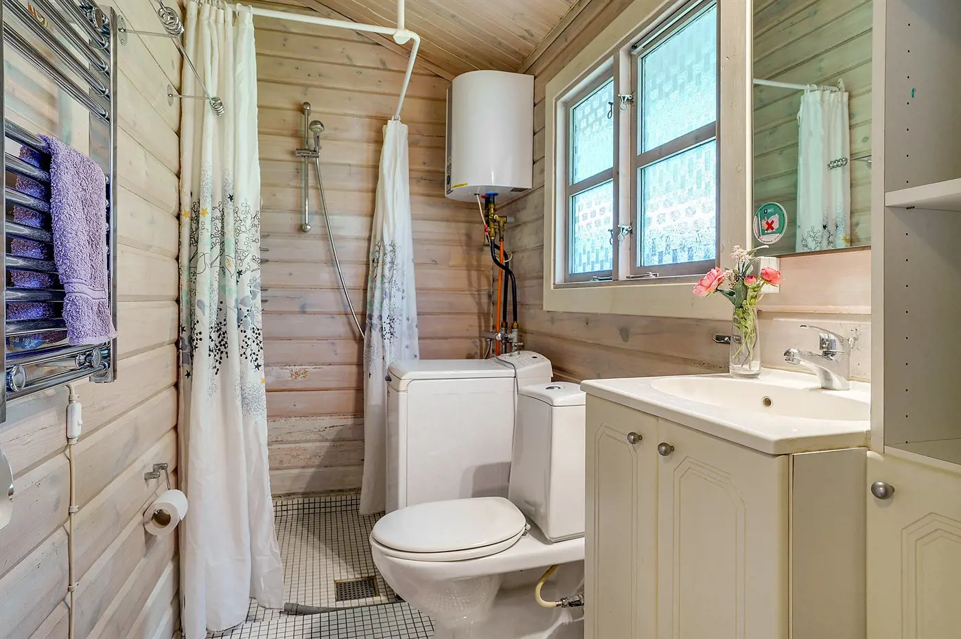 Das Badezimmer ist mit Duschnische und Toilette ausgestattet.