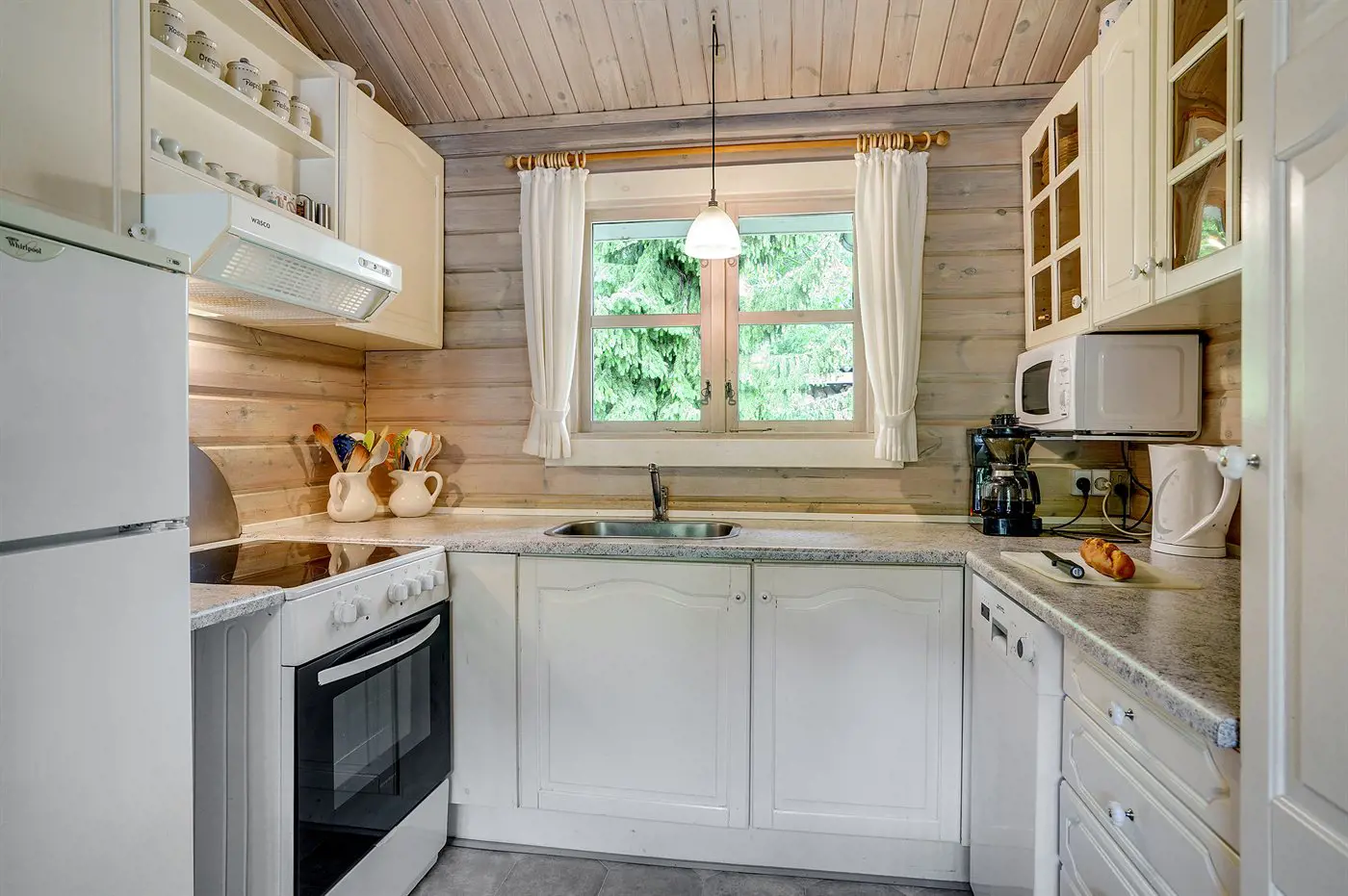 Innen erwartet dich eine funktionale Küche mit Cerankochfeld, Umluftofen, Mikrowelle und Geschirrspüler. Es gibt 4 Schlafzimmer, eines davon im gemütlichen Gästehaus. Die Schlafplätze verteilen sich auf 2 Doppelbetten, 1 Doppelschafcouch und 2 Einzelbetten im Gästehaus. Außerdem stehen Kinderbett und Hochstuhl zur Verfügung.