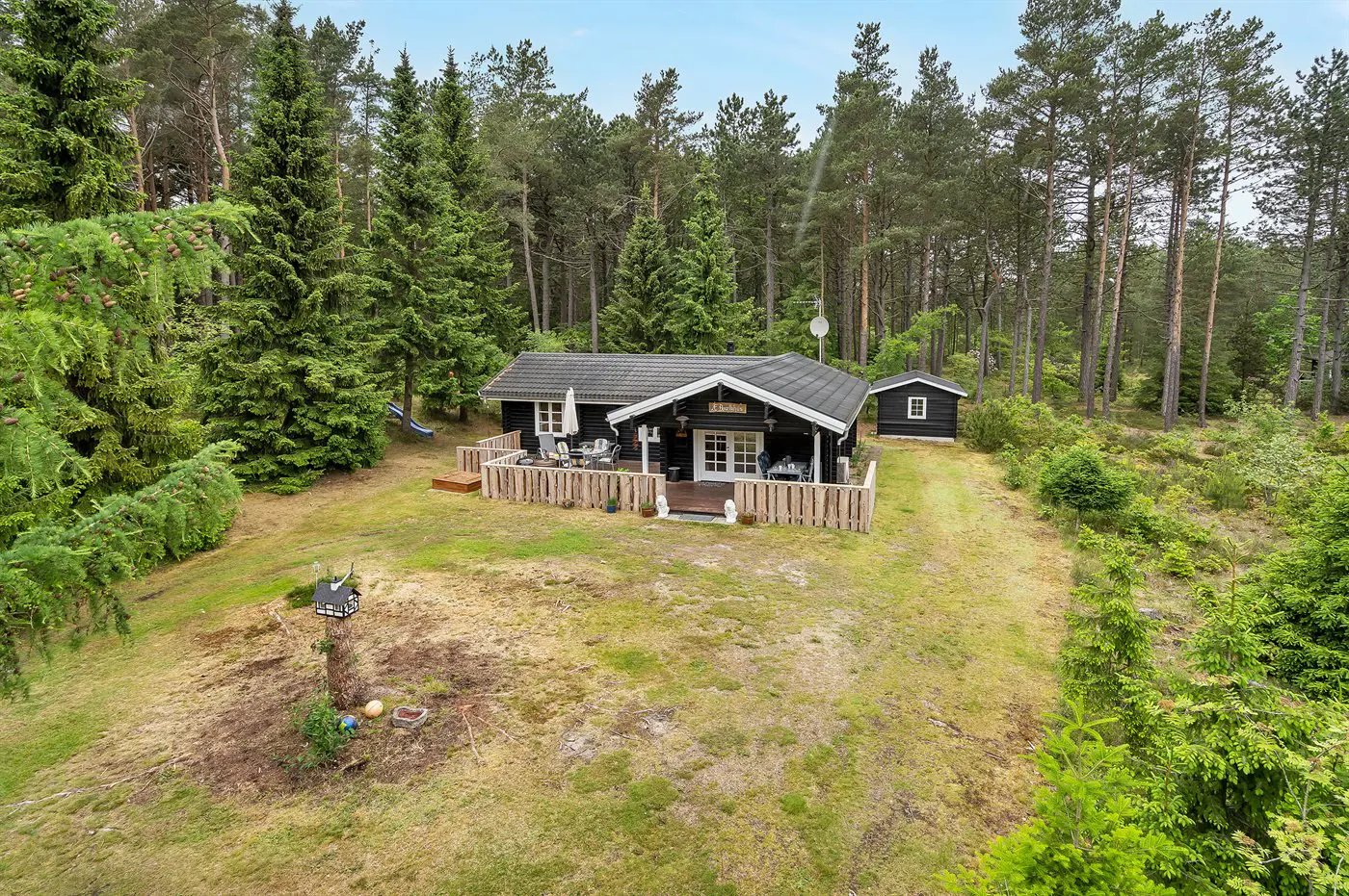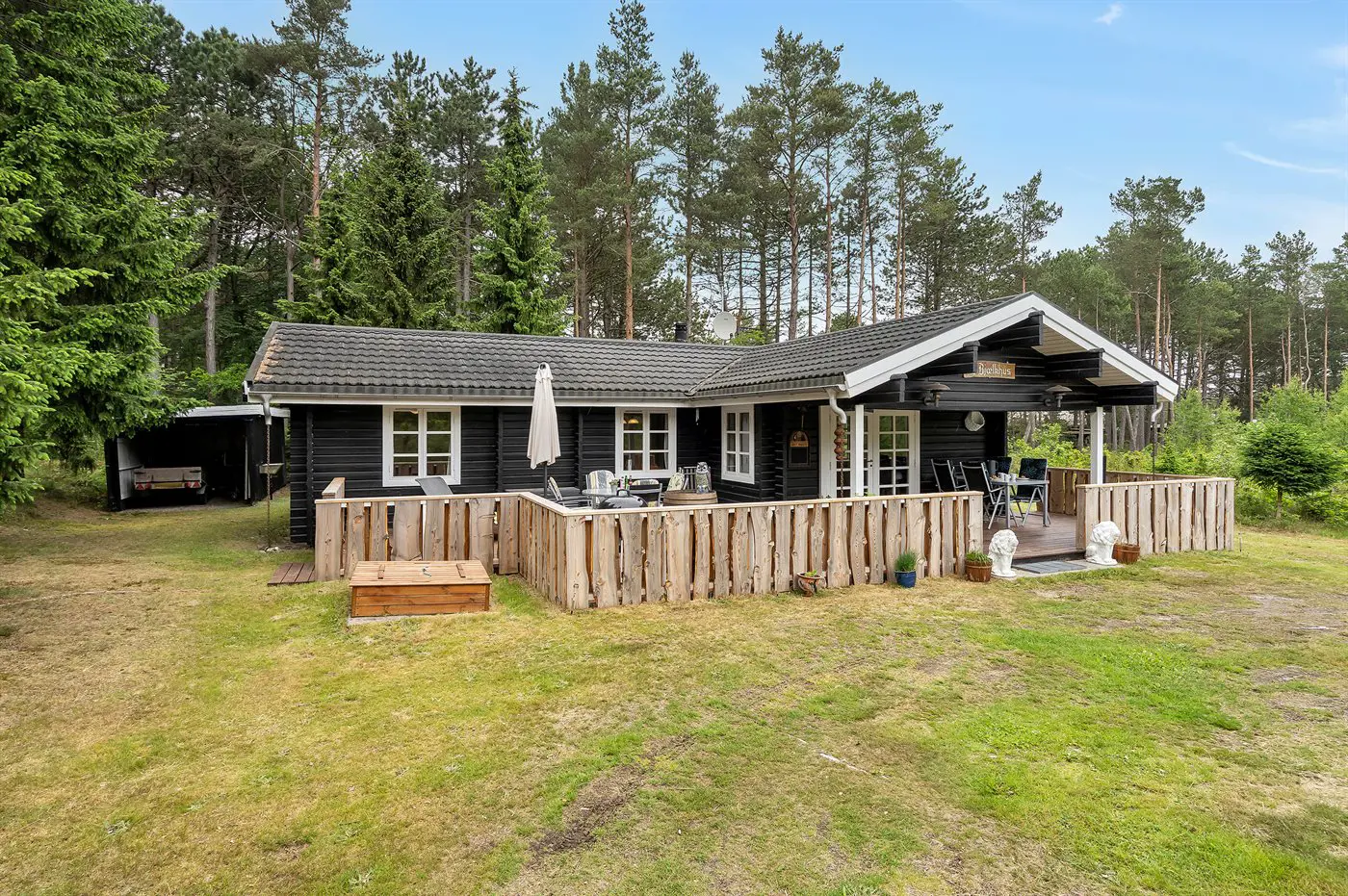 Träumst du von Ruhe, Natur und echter Ferienhausstimmung? Dann ist dieses gemütliche Balkenhaus mit Gästehaus die ganz richtige Wahl. Das Haus liegt zurückgezogen auf einem sehr großen, ungestörten Naturgrundstück in Wald und Plantage, wo es viel Platz zum Entspannen, Spielen und für gemeinsame Zeit mit der Familie oder mit Freunden gibt.