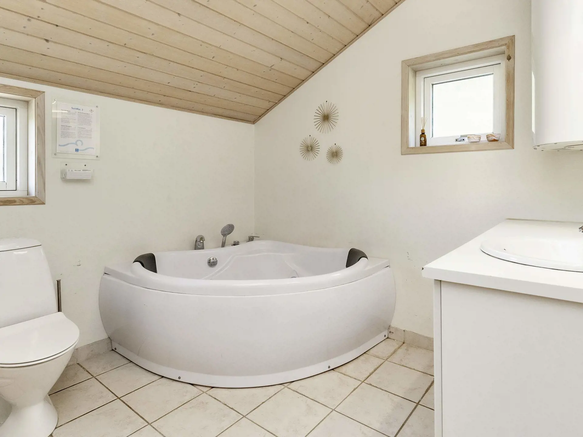 Dieses geräumige Ferienhaus wurde aus qualitativ hochwertigen Materialien gebaut und liegt auf einem großen Grundstück in der Nähe des Limfjords. Das Haus ist modern und praktisch mit einer offenen Dachkonstruktion und einem großen Wohnzimmer eingerichtet. Außerdem gibt es eine gut ausgestattete Küche, einen Hems mit zwei zusätzlichen Schlafplätzen, ein großes Bad mit Dusche, Whirlpool und Sauna sowie ein extra Bad mit Dusche, Toilette und Waschbecken. Keine Vermietung an Jugendgruppen.