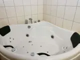 Innen heller Küchen-/Wohnbereich mit Ess- und Sitzecke sowie Zugang zu einer sonnigen Terrasse davor mit ausreichend Fläche. Außerdem im Haus zwei Schlafzimmer mit je einem Doppelbett sowie ein Schlafzimmer mit Doppel- und Etagenbett. Schränke in allen drei Zimmern. Zudem zwei begehbare Hemse unter dem Dach, mit insgesamt 4 Matratzen auf dem Boden. Es gibt zwei Badezimmer mit Dusche/WC, eines zusätzlich mit Sauna und Whirlpool ausgestattet.