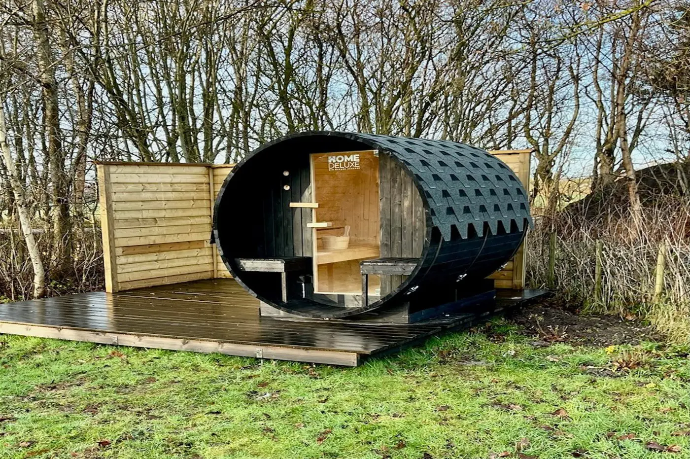 Dieses schöne Feriehaus liegt auf einem eingezäunten Gartengrundstück. Das Haus ist von etwa 100 m2 offener und etwa 15 m2 überdachter Terrassefläche umgeben – hier kannman es sich mit einem guten Buch gemütlich machen, eine leckere Mahlzeit im Freien genießen oder sich im Hot Tub oder der Außen-Sauna entspannen und die Seele baumeln lassen.