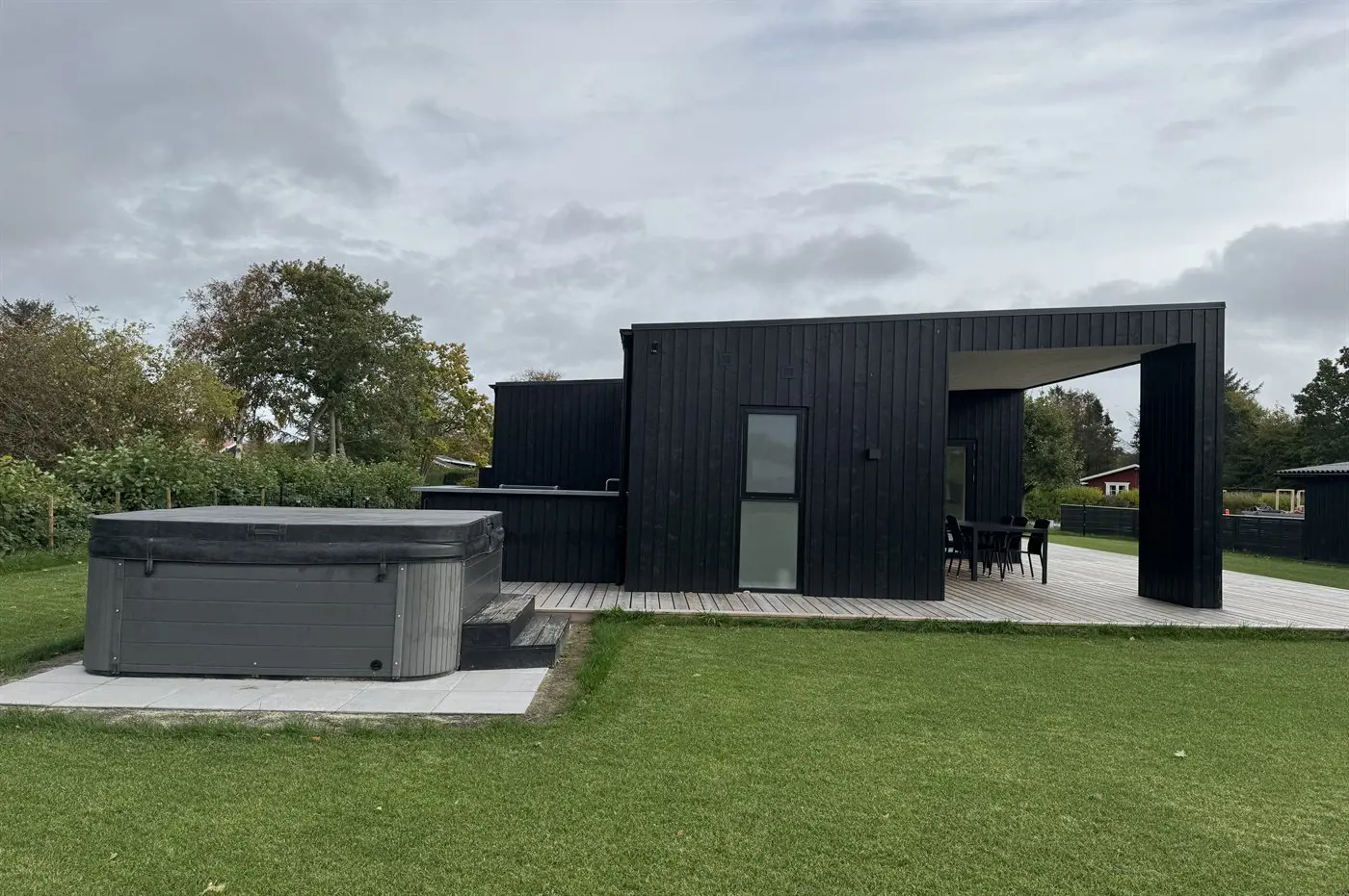 Die Ferienunterkunft liegt auf einem 1205 m² großen Naturgrundstück. Das Grundstück ist eingezäunt. Die Entfernung zum Meer beträgt 1000 m. Die Entfernung zum Fjord beträgt 180 m. Die nächste Einkaufsmöglichkeit liegt 1900 m entfernt. In einem Abstand von 2890 m gibt es einen Golfplatz. Es steht ein offenes Terrassenareal zur Verfügung. Außerdem gibt es überdachte Terrasse.Es beteht die Möglichkeit das Essen in der Außenküche zuzubereiten. Es steht ein Grill zur Verfügung. Parkplatz auf dem Grundstück.
