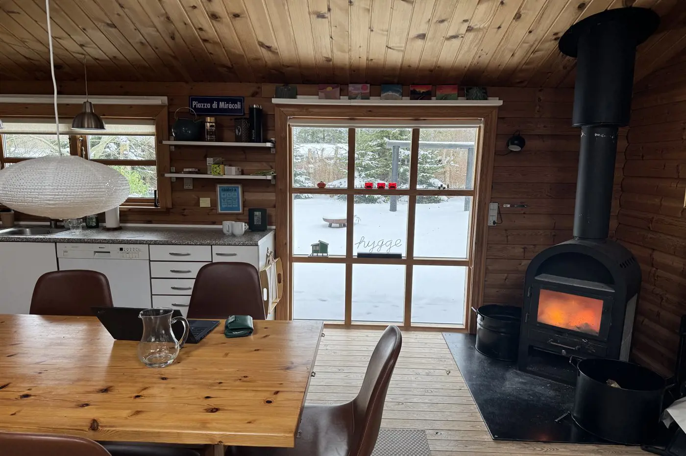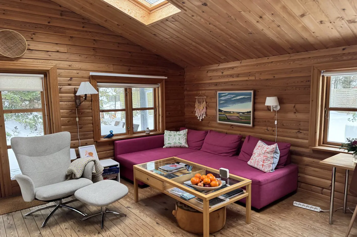 Draußen kannst du die Ruhe auf der überdachten Terrasse genießen oder dir eine eigene kleine Oase in den vielen gemütlichen Ecken rund um das Haus suchen. An kühlen Abenden kannst du dich in der Außensauna aufwärmen oder dich mit deinen Liebsten am Feuerkorb versammeln – mit Stockbrot und guten Gesprächen unter den Sternen.