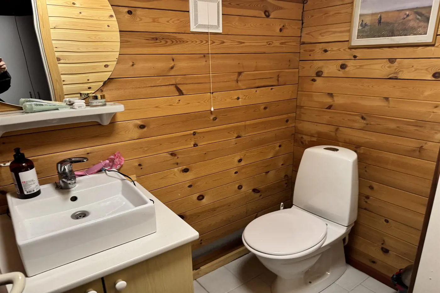 Es gibt 1 Badezimmer mit Duschnische und 2 Toiletten, davon 1 Gästetoilette. Fußbodenheizung in 1 Badezimmer.