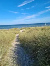 Nur 800 Meter zu einem kinderfreundlichen, ruhigen Strand – ideal zum Baden, Spazierengehen und Sonnenuntergänge genießen.
