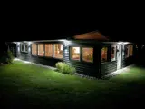 Stimmungsvolle Außenbeleuchtung, die am Abend eine gemütliche Urlaubsatmosphäre schafft.