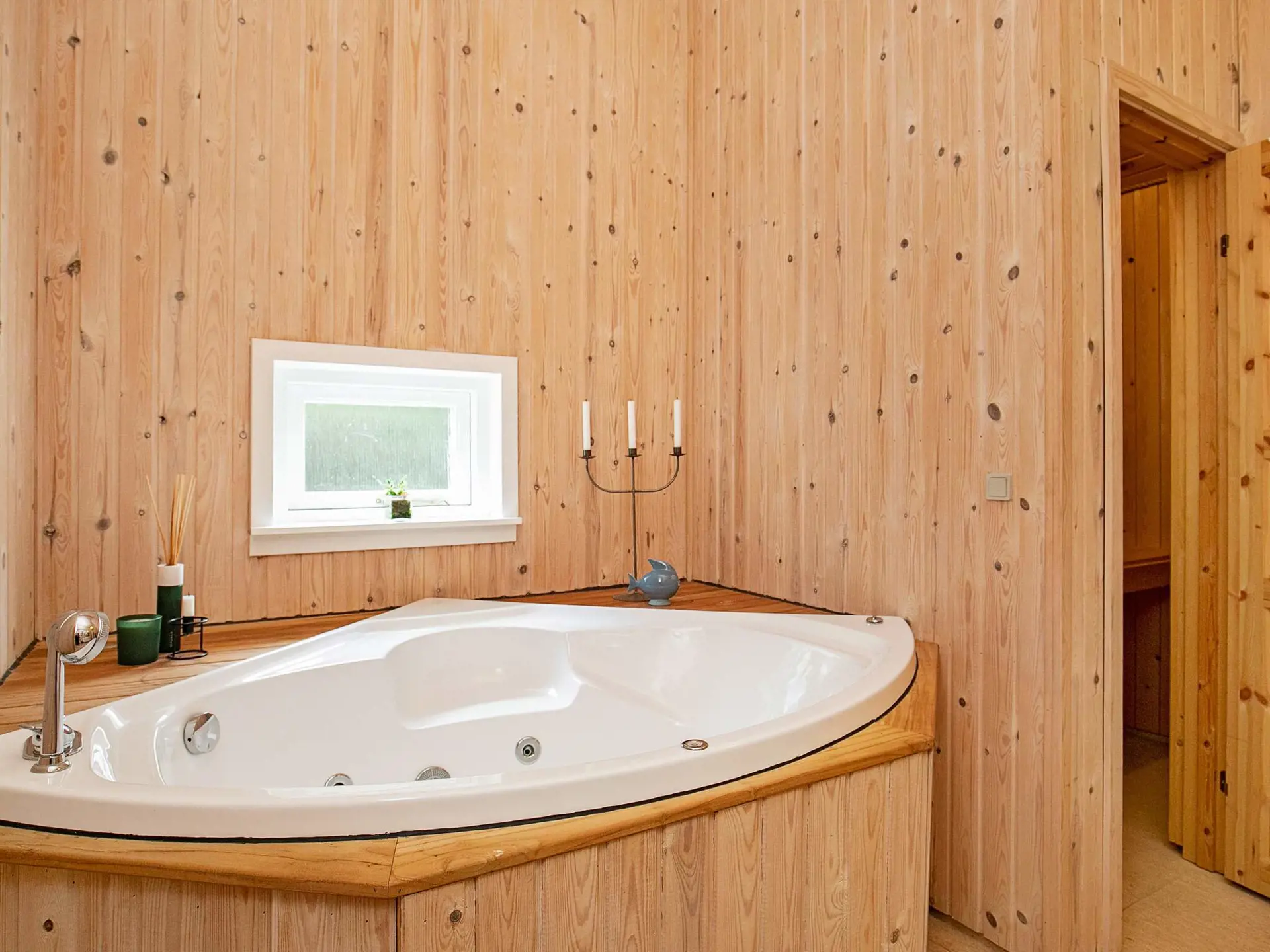 Ferienhaus mit Whirlpool und Sauna im Bad für erholsame Stunden. Liegt in der Nähe von Wald, Feldern und Strand bei Koldkær, mitten zwischen den Ferienorten Hals und Hou.