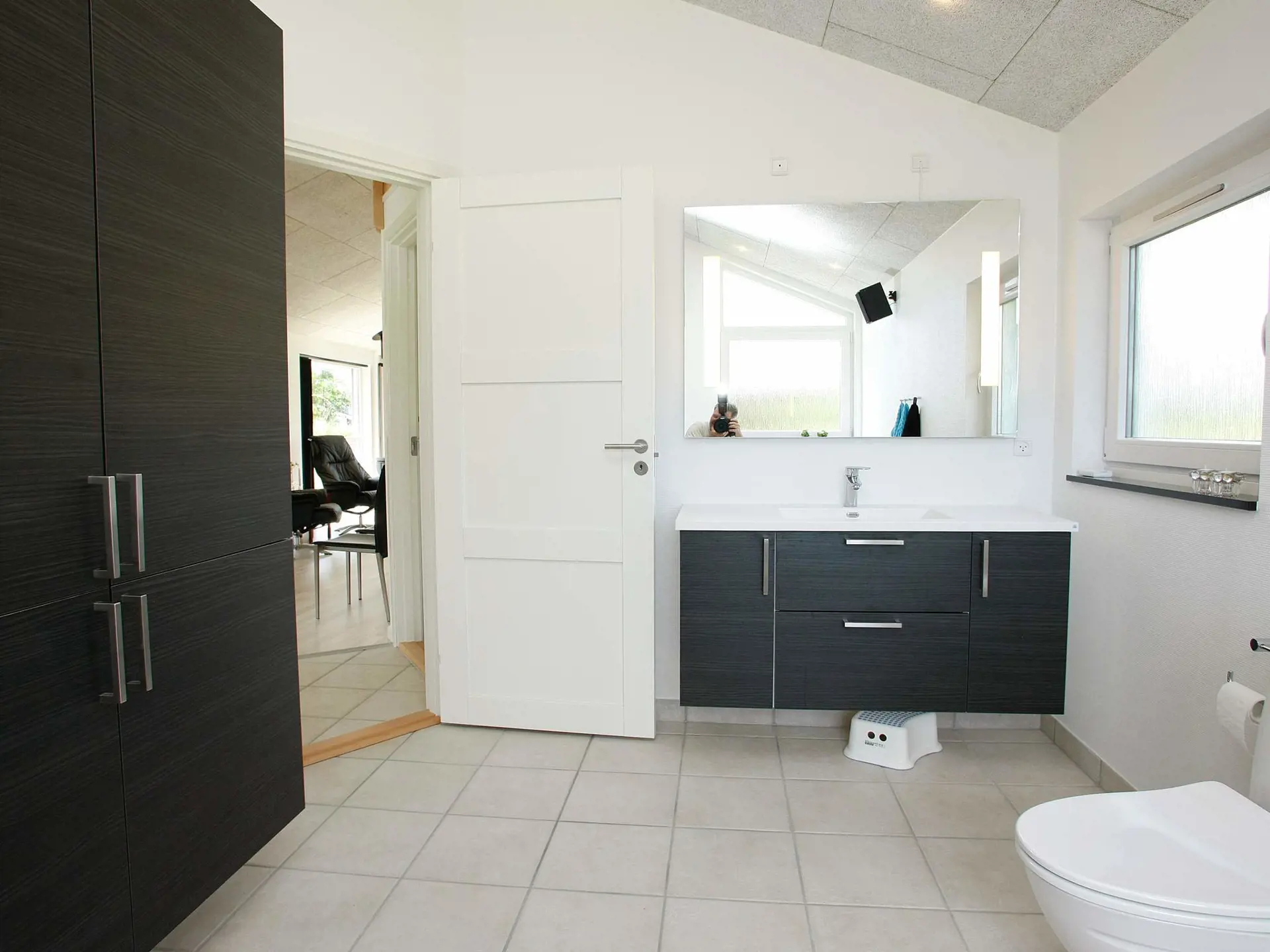 Das Ferienhaus hat zwei Badezimmer mit Dusche, um den Aufenthalt für alle angenehm zu gestalten. Die energieeffiziente Erdwärmeheizung hält den Stromverbrauch niedrig und sorgt das ganze Jahr über für eine angenehme Innentemperatur. Das Grundstück wurde für Familien mit Kindern angelegt und bietet Schaukeln und einen Sandkasten, um die jüngsten Gäste im Freien zu unterhalten. Auf der 10 m² großen, überdachten Terrasse können Sie auch bei schlechtem Wetter die frische Luft genießen.