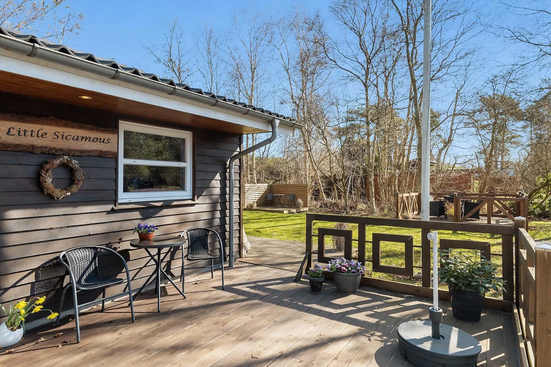 Diese Unterkunft hat eine Fläche von 110 m² und befindet sich auf einem 1.299 m² Grundstück, u.a. mit Schaukel und Sandkasten.