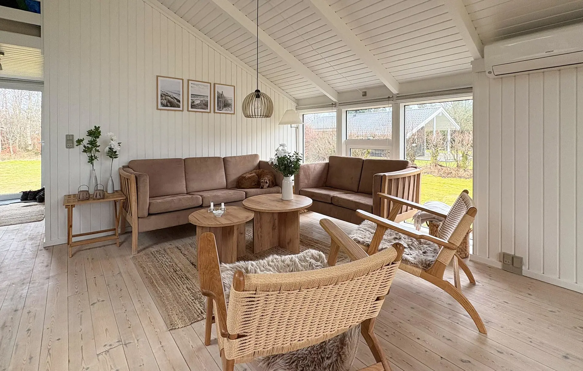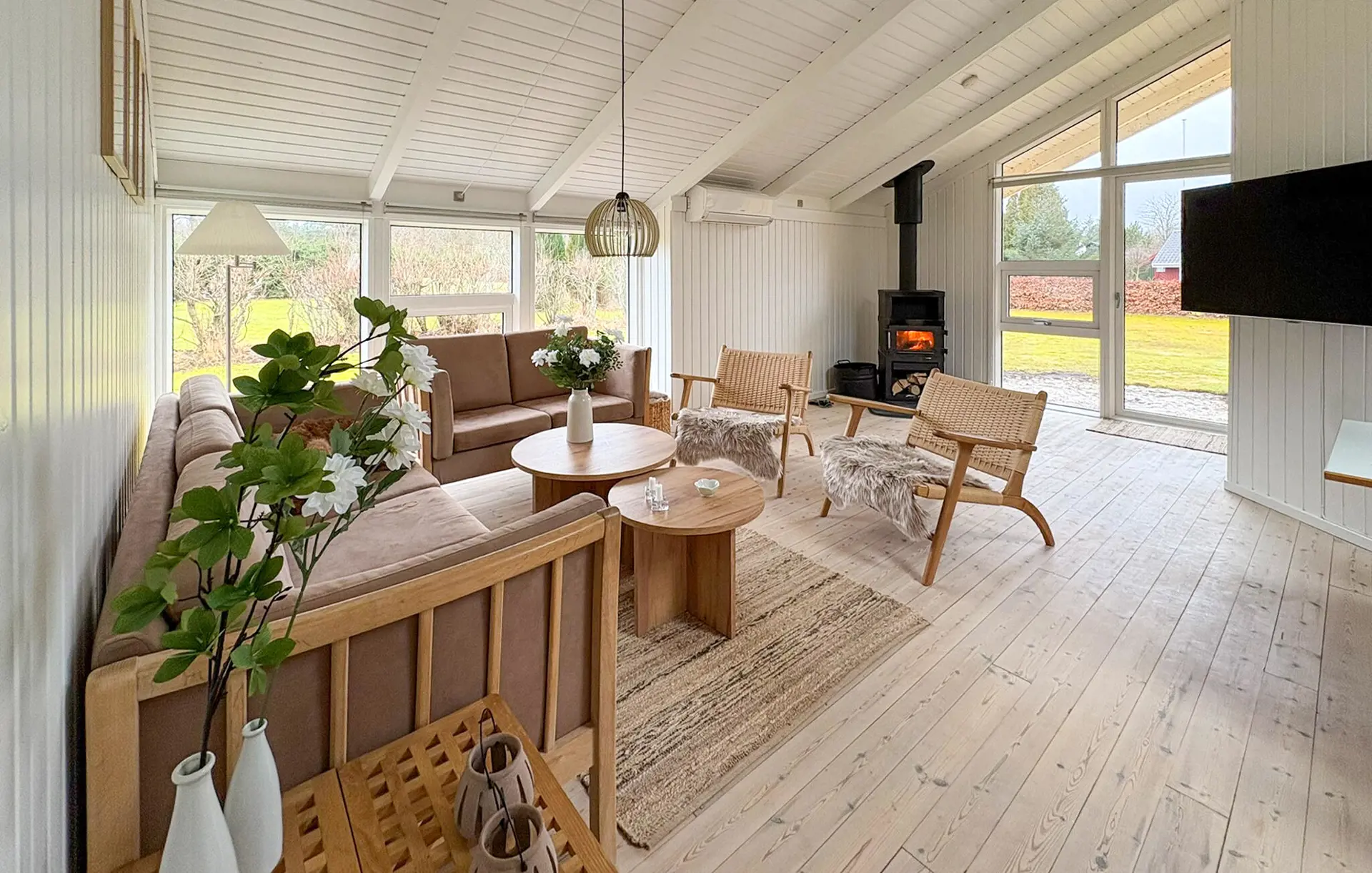 Freuen Sie sich auf ein charmantes Haus mit hohen Decken, viel hellem Holz und großen Fenstern, die den Blick in den Garten freigeben. Natürliche Materialien, klare Linien und sorgfältig ausgewählte Möbel verleihen den Räumen eine ruhige, ausgewogene Ausstrahlung. Verbringen Sie entspannte Stunden beim Plaudern oder Lesen am knisternden Kamin und genießen Sie die behagliche Wärme in stilvoller Umgebung.