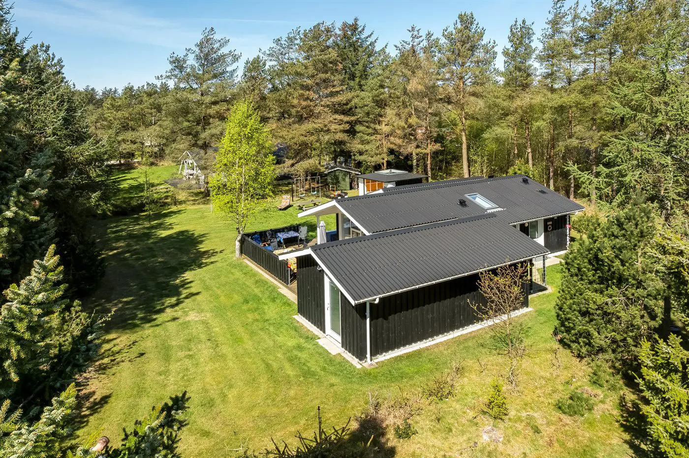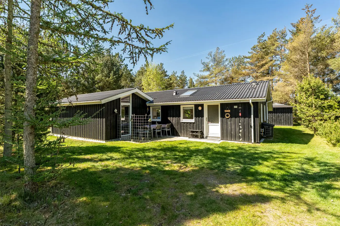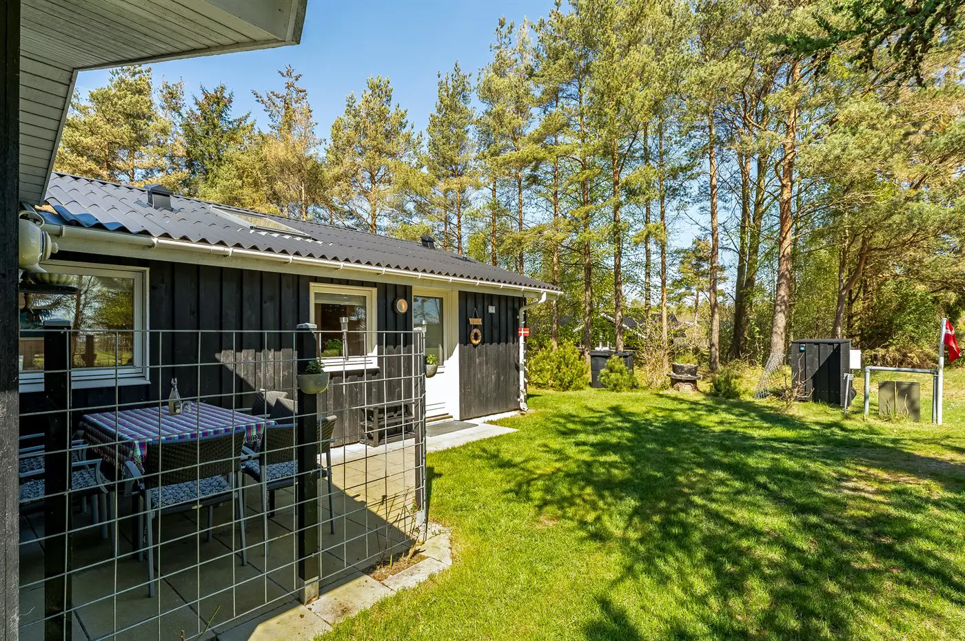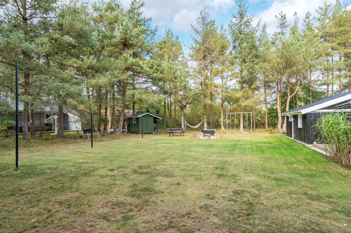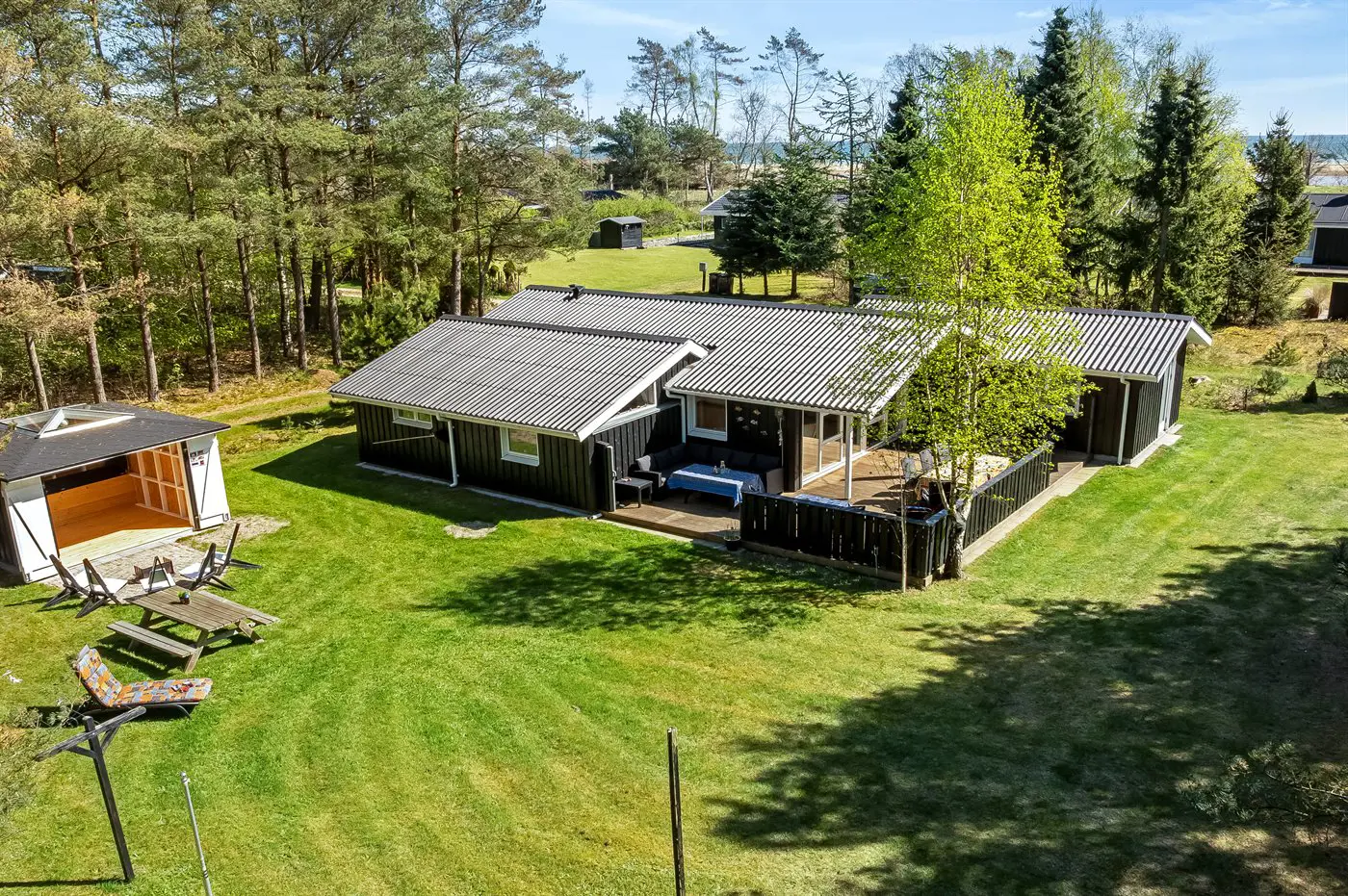 Die Ferienunterkunft liegt auf einem 1058 m² großen Gartengrundstück. Die Entfernung zum Meer beträgt 200 m. Die nächste Einkaufsmöglichkeit liegt 2000 m entfernt. In einem Abstand von 500 m gibt es einen Golfplatz. Es steht ein 40 m² Terrassenareal zur Verfügung. Außerdem gibt es 9 m² überdachte Terrasse. Schaukel. Sandkasten.Lagerfeuerstelle. Es ist ein Ladestecker für Elektroautos installiert. Parkplatz auf dem Grundstück.