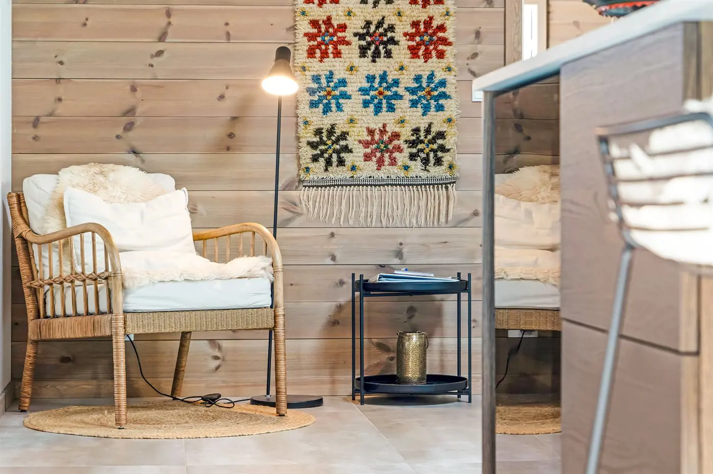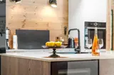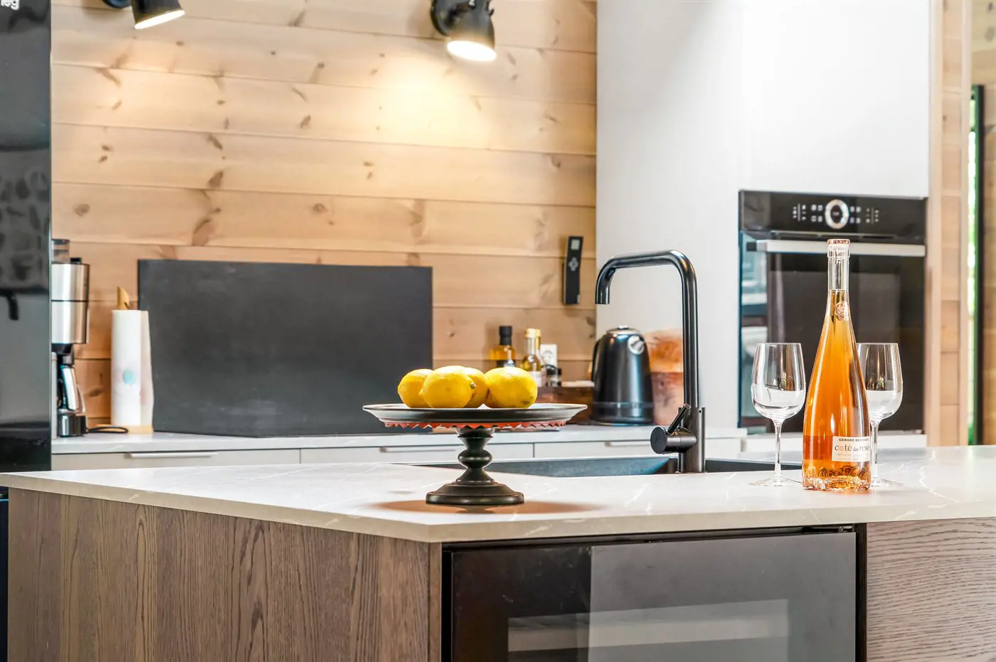 Die Küche ist mit Kühlschrank ausgestattet. Außerdem gibt es 4 Induktions-Kochzonen, Umluftofen sowie Geschirrspüler. Ferner steht ein Weinkühlschrank zur Verfügung.