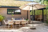 Genieße Stunden im Freien beim Zubereiten von Mahlzeiten in der tollen Außenküche, nimm eine erfrischende Dusche unter der Außendusche mit kaltem und warmem Wasser oder entspanne dich im Hot-Tub unter freiem Himmel.