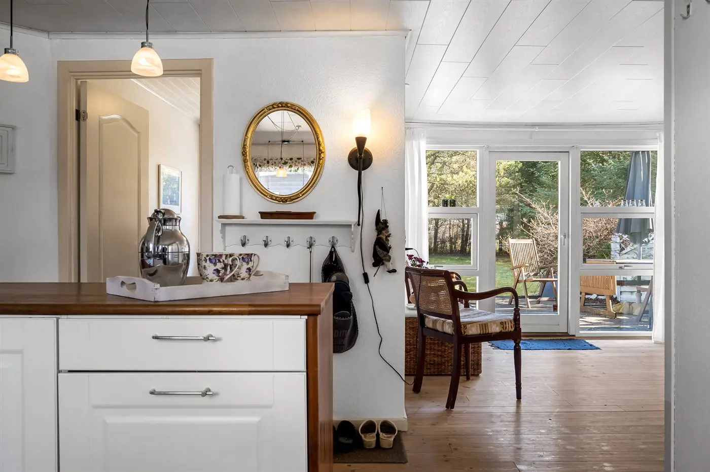 Die Ferienunterkunft liegt auf einem 1210 m² großen Naturgrundstück. Das Grundstück ist eingezäunt. Die Entfernung zum Meer beträgt 950 m. Die Entfernung zum Fjord beträgt 3980 m. Die nächste Einkaufsmöglichkeit liegt 3700 m entfernt. In einem Abstand von 3530 m gibt es einen Golfplatz. Es steht ein offenes Terrassenareal zur Verfügung. Außerdem gibt es überdachte Terrasse. Zutritt zu einem Wintergarten. Es steht ein Grill zur Verfügung. Parkplatz auf dem Grundstück.