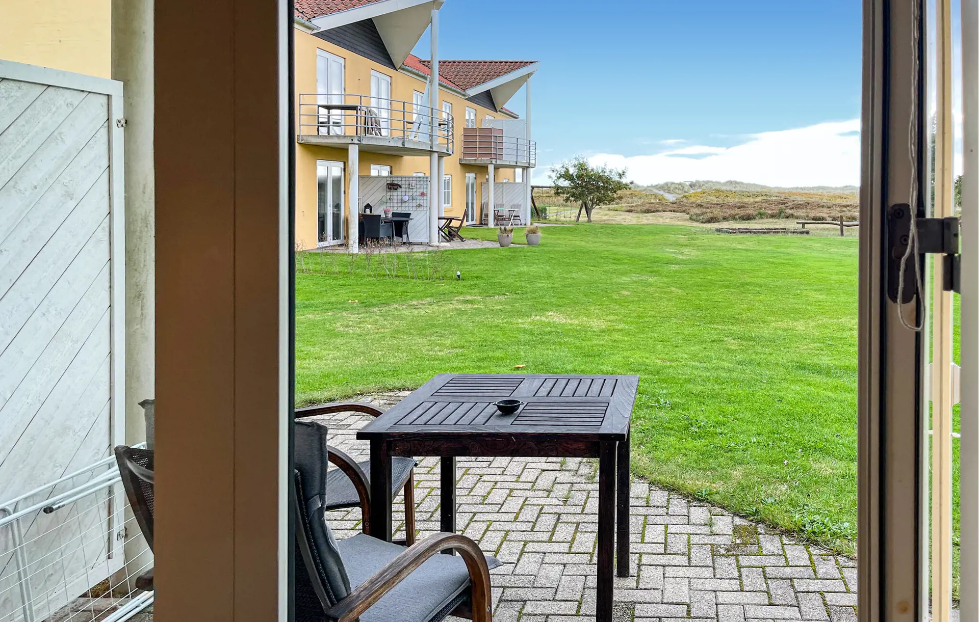 Öffnen Sie die Terrassentür und treten Sie hinaus in die frische Luft. Auf einer der möblierten Terrassen, entweder vor oder hinter dem Haus, können Sie in Ruhe frühstücken oder den Tag bei einem Glas Wein ausklingen lassen. Eine Grillmöglichkeit steht bereit, und die große Rasenfläche lädt zu kleinen Spielen oder einfach zum Entspannen ein. Der Blick über die weitläufige Landschaft vermittelt ein Gefühl von Freiheit und Ruhe.