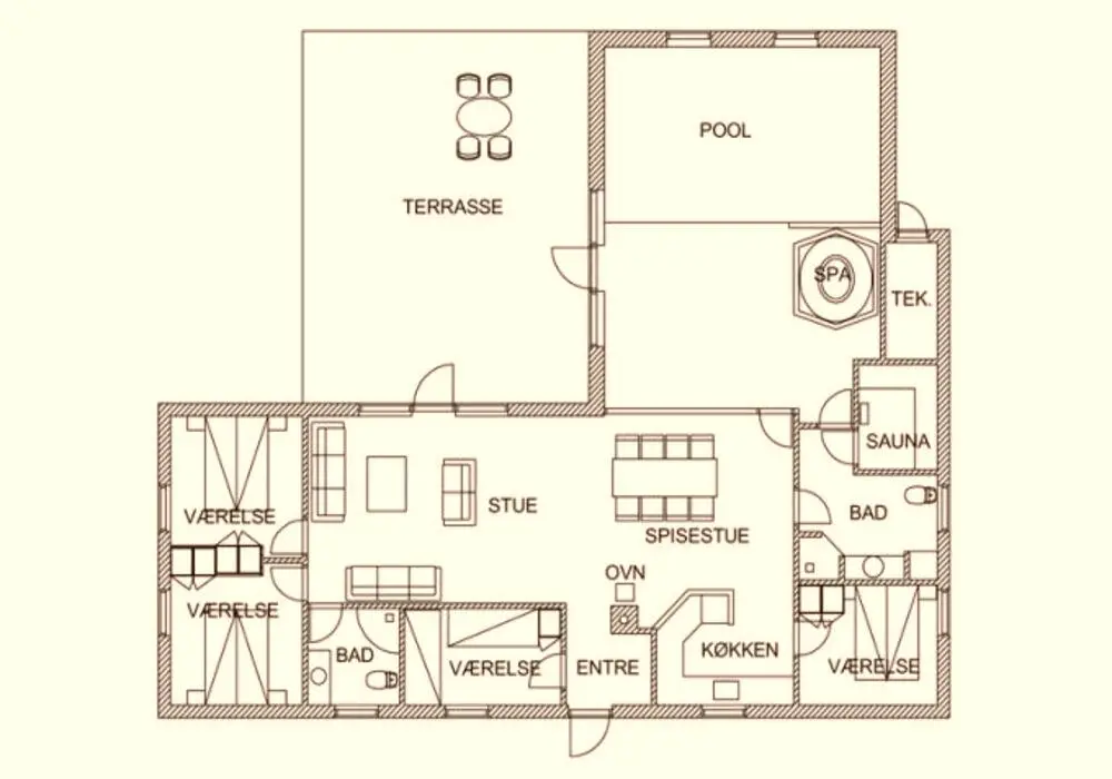 Dieses Ferienhaus liegt attraktiv zwischen dem Ringkøbing Fjord und der Nordsee, wo die gut besuchten Städte Hvide Sande und Søndervig viel zu bieten haben. Dieses 180 m² große, reetgedeckte Poolhaus wurde 1989 erbaut und 2006 renoviert. Das Backsteinhaus liegt auf einem 2.500 m² großen, hügeligen Naturgrundstück, nur ca. 850 m von der Nordsee entfernt.