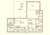 Vom Wohnzimmer aus blicken Sie in den Poolraum, wo die ganze Familie den 24 m² großen beheizten Pool genießen oder sich im Whirlpool oder in der Sauna aufwärmen kann. Die 40 m² große offene Terrasse ist mit Gartenmöbeln und einem Grill ausgestattet, wo Sie in der Sommerhitze entspannen können, während die Kinder im Sandkasten oder auf der Schaukel spielen.