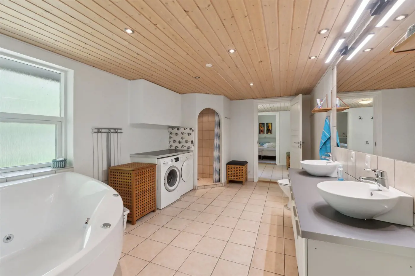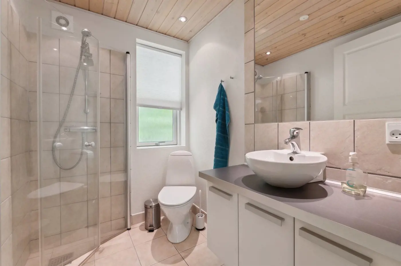 Es gibt 1 Badezimmer mit Duschnische und 2 Toiletten, davon 1 Gästetoilette Es steht eine Sauna zur Verfügung in der Sie sich so richtig entspannen können.