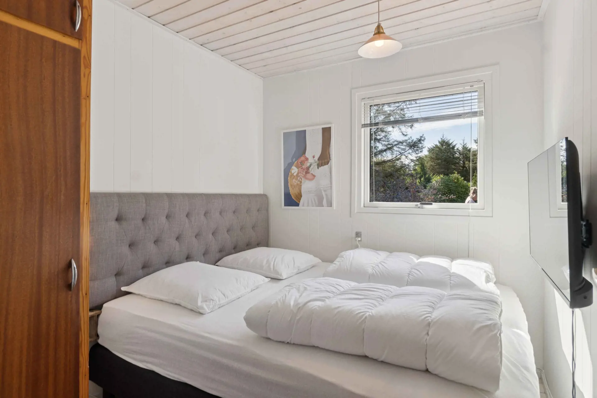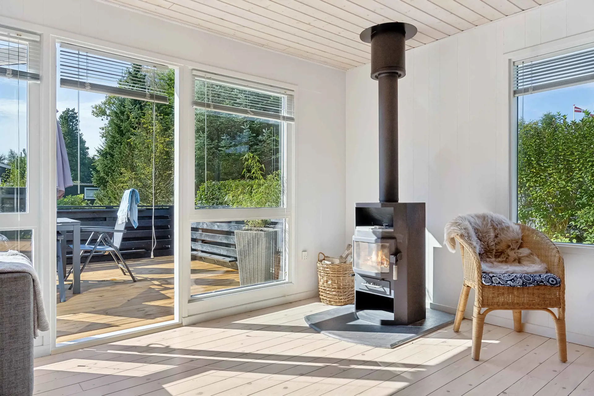 Das Haus ist mit Wärme und Seele eingerichtet – klassisch skandinavisch mit hellen Wänden und einem gemütlichen Kaminofen, der an kühlen Abenden für Stimmung sorgt. Es ist das perfekte Refugium für Familien und Paare, die Ruhe, Komfort und Natur suchen.