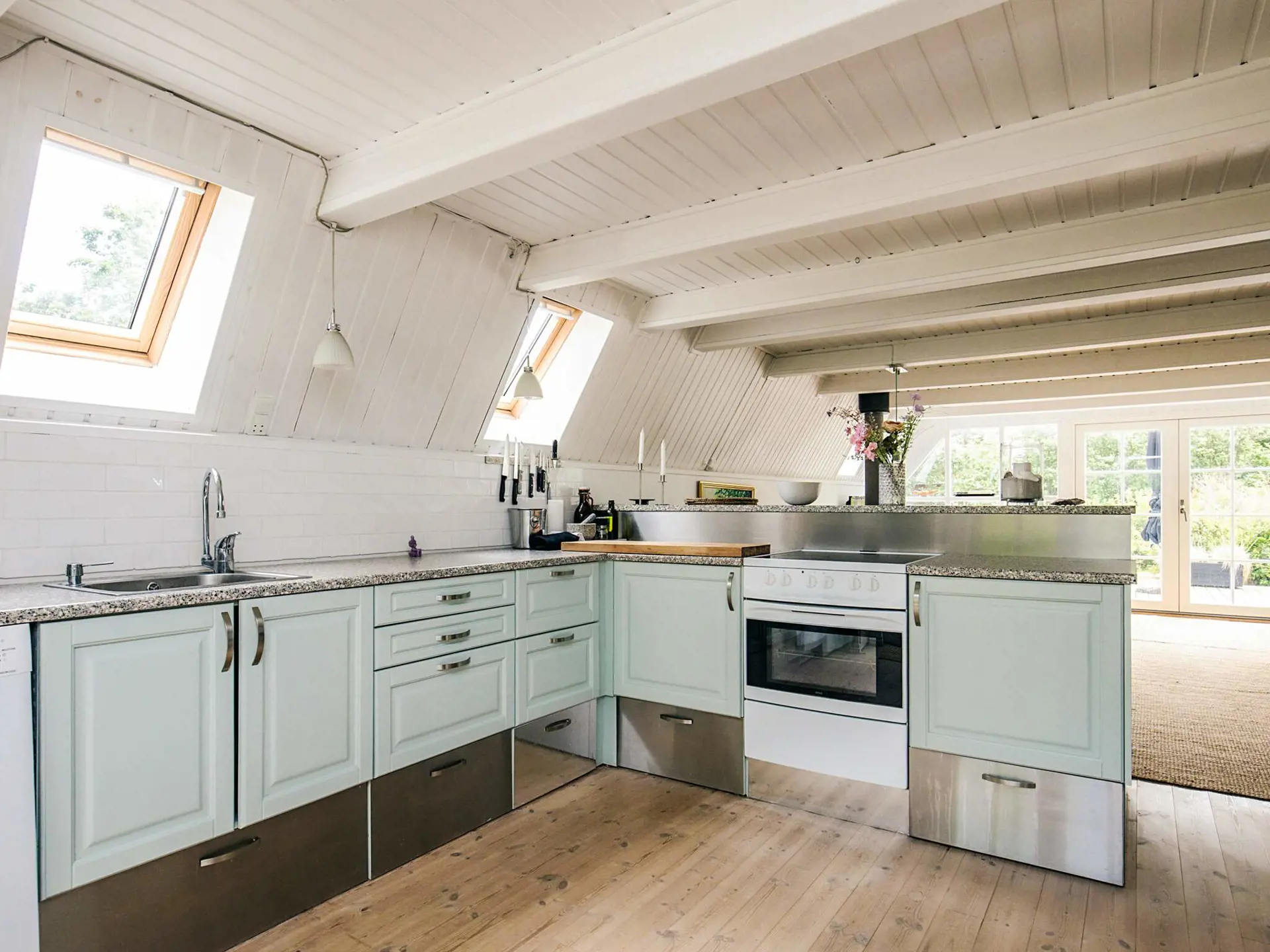 Schönes Ferienhaus an einer ruhigen und geschlossenen Straße in Hou Lagunen. Dieses schöne Ferienhaus bietet Platz für bis zu 4 Personen und ist ideal für einen entspannten Urlaub. Die große, offene Küche ist mit modernen Annehmlichkeiten ausgestattet, darunter eine Spülmaschine, und bietet reichlich Gelegenheit, Mahlzeiten zuzubereiten. Die Küche ist offen mit dem hellen und einladenden Wohnzimmer verbunden, in dem große Fenster für viel Tageslicht sorgen. Das Wohnzimmer ist mit einem Holzofen, einem Fernseher mit Chromecast und einer Sofalandschaft mit Platz für alle ausgestattet. Im Obergeschoss des Ferienhauses befinden sich zwei gemütliche Schlafzimmer - eines mit einem Doppelbett und eines mit zwei Einzelbetten. Das Badezimmer ist mit einer Waschmaschine ausgestattet, so dass Sie Ihre Kleidung während Ihres Aufenthalts problemlos frisch halten können. Auf der großen, offenen Terrasse können Sie die Sonne genießen, im Freien essen oder an langen Sommerabenden entspannen Das Haus ist nicht für Jugend- und Bastelgruppen geeignet