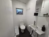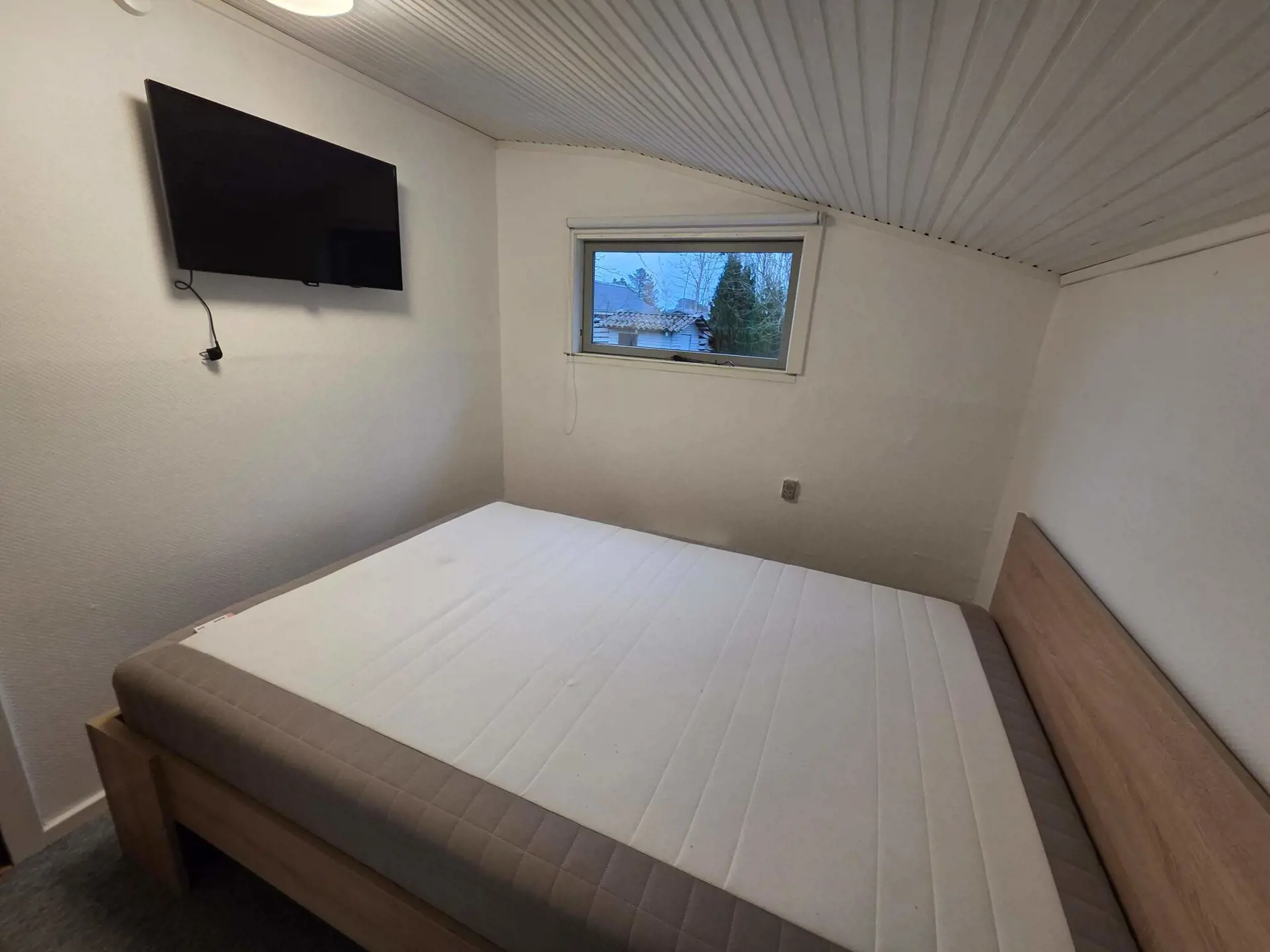 Das Ferienhaus bietet drei Schlafzimmer: zwei mit komfortablen Doppelbetten und eines mit zwei Kojen im Etagenbett. Alle Schlafzimmer verfügen über einen eigenen Fernseher mit Chromecast. Das Badezimmer ist mit WC, Waschbecken und Dusche ausgestattet, und das Ferienhaus wird elektrisch beheizt.