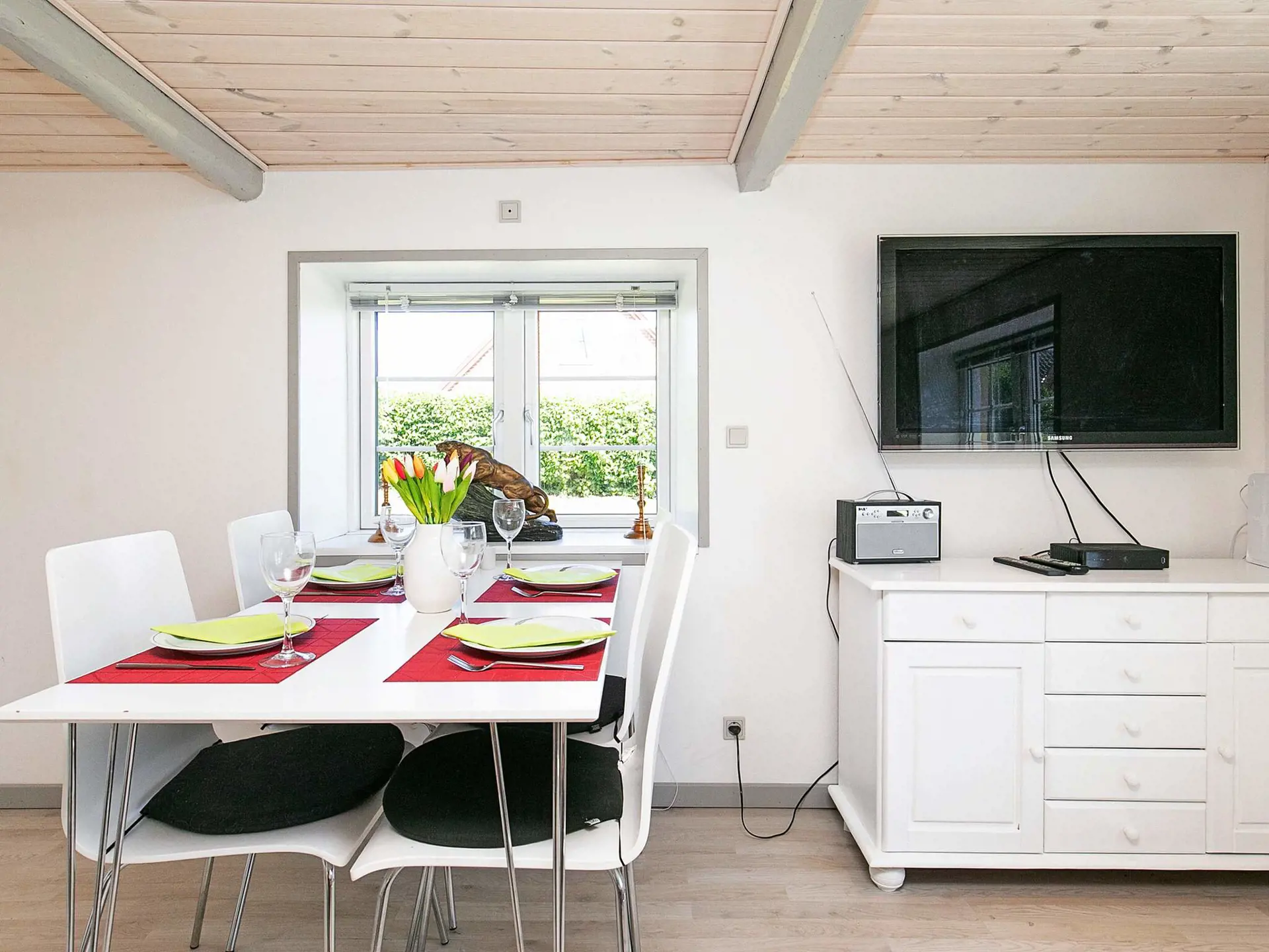 Das Haus ist gut instand gehalten und eher funktional eingerichtet. Die freigelegten Deckenbalken sowie die niedrige Raumhöhe tragen dennoch zu einem gemütlich nostalgischen Stil bei.