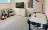 Dieses behagliche Haus ist wie geschaffen für eine sorgenfreie Auszeit vom Alltag. Gemütliche Sessel und Sofas, ein Fernseher und eine praktische Küche schaffen eine Atmosphäre, in der Sie schnell abschalten und sich einem entspannten Urlaubsgefühl hingeben können. Egal ob Sie Musik hören, eine Runde Billard spielen oder eine leckere Mahlzeit zubereiten – hier gestalten Sie den Tag nach Ihren Wünschen.