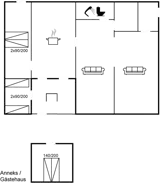 Die Schlafplätze verteilen sich auf 3 Schlafräume. 4 Schlafplätze in Doppelbetten. 2 Schlafplätze in Einzelbetten. 2 von diesen Schlafplätzen befinden sich im Gästehaus.