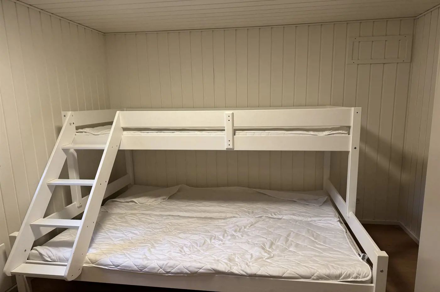 Die Schlafplätze verteilen sich auf 2 Schlafräume. 2 Schlafplätze in einem Doppelbett. 3 Schlafplätze in Etagenbetten. 2 Schlafplätze auf einer Doppelschlafcouch. 2 von diesen Schlafplätzen befinden sich im Wohnzimmer. Ferner steht ein Kinderbett zur Verfügung.